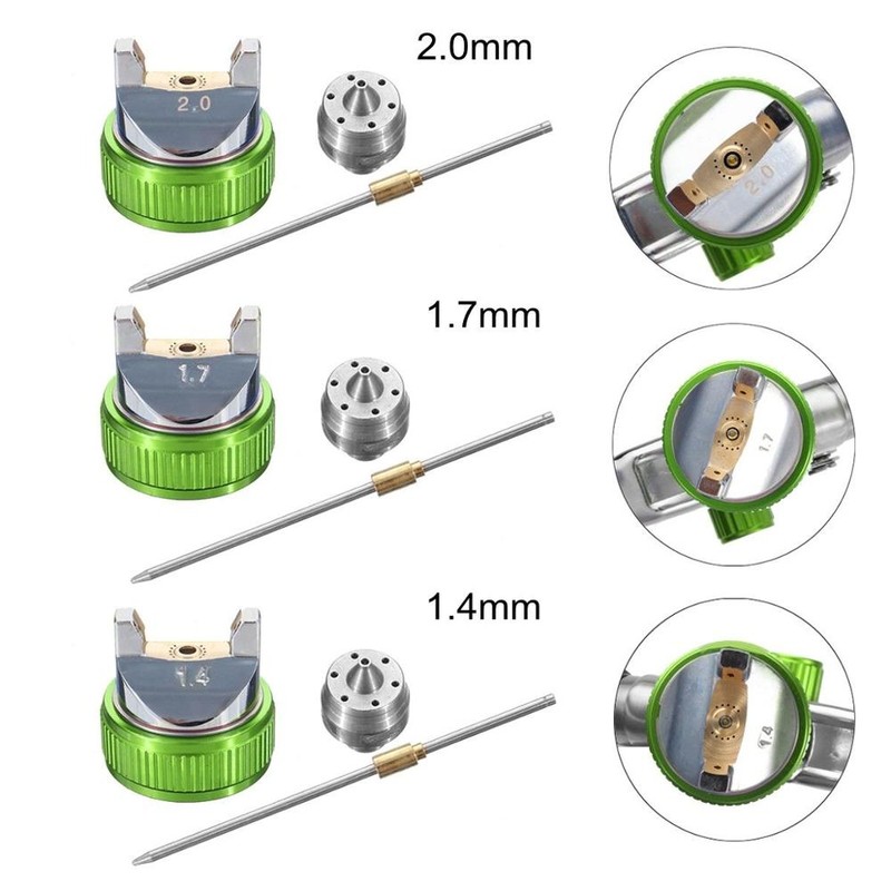 3. multi-purpose airbrush da precisão: com 3 pces de aço inoxidável agulha fluida e bocal (1.4mm/1.7mm/2.0mm), resistente à corrosão.