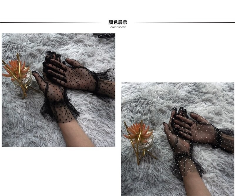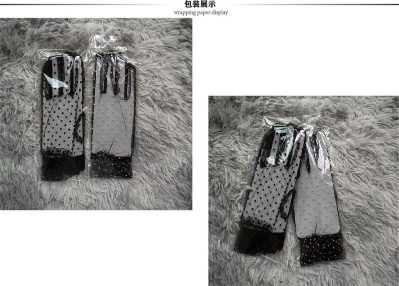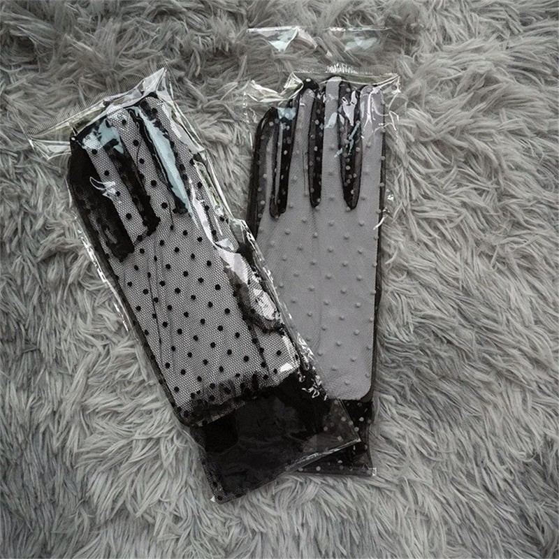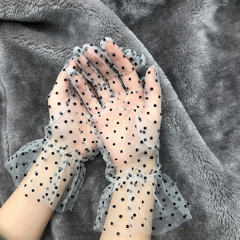 Feminino Sexy Guantes Transparentes Dot Print Preto Branco Malha Tule Luvas Feminino Clube Baile De Formatura Festa Dança Vestido Luva