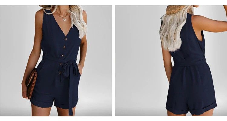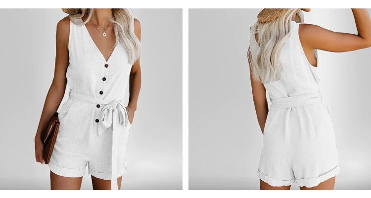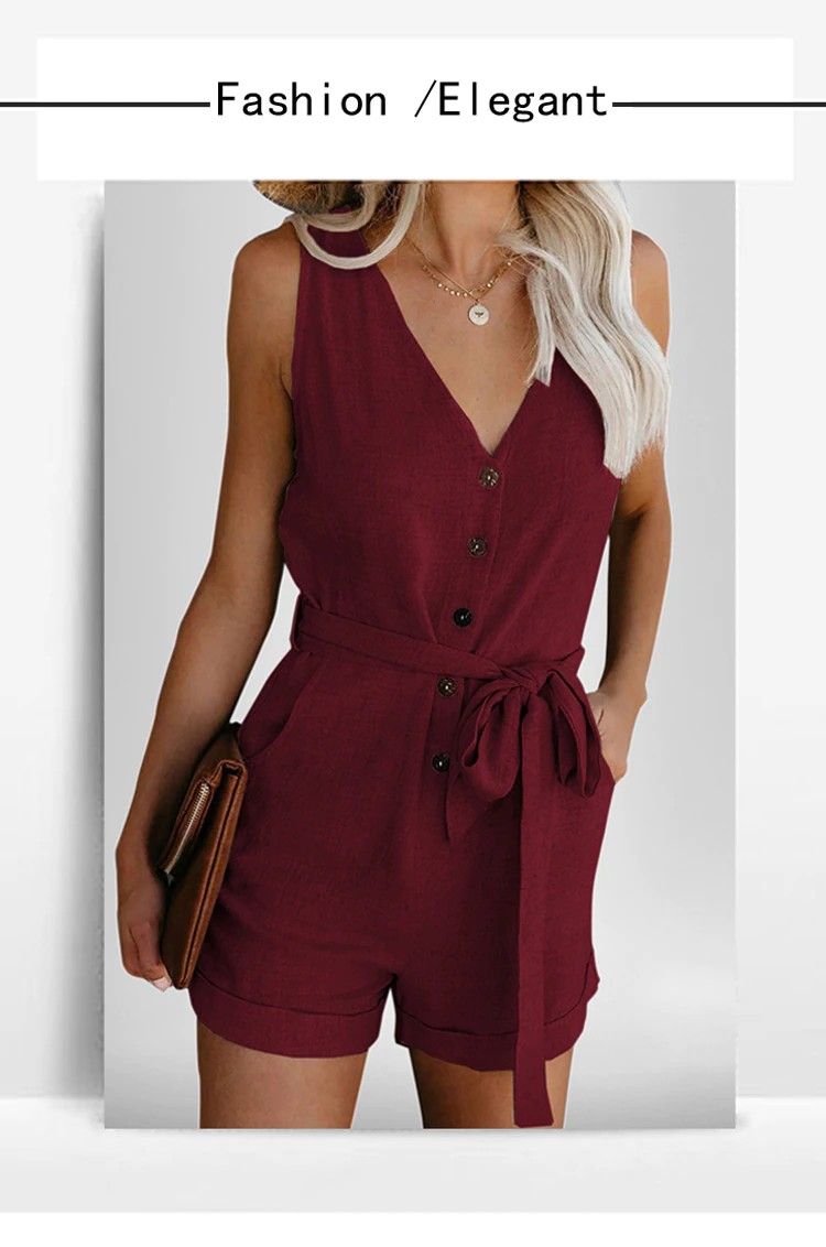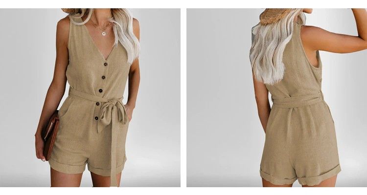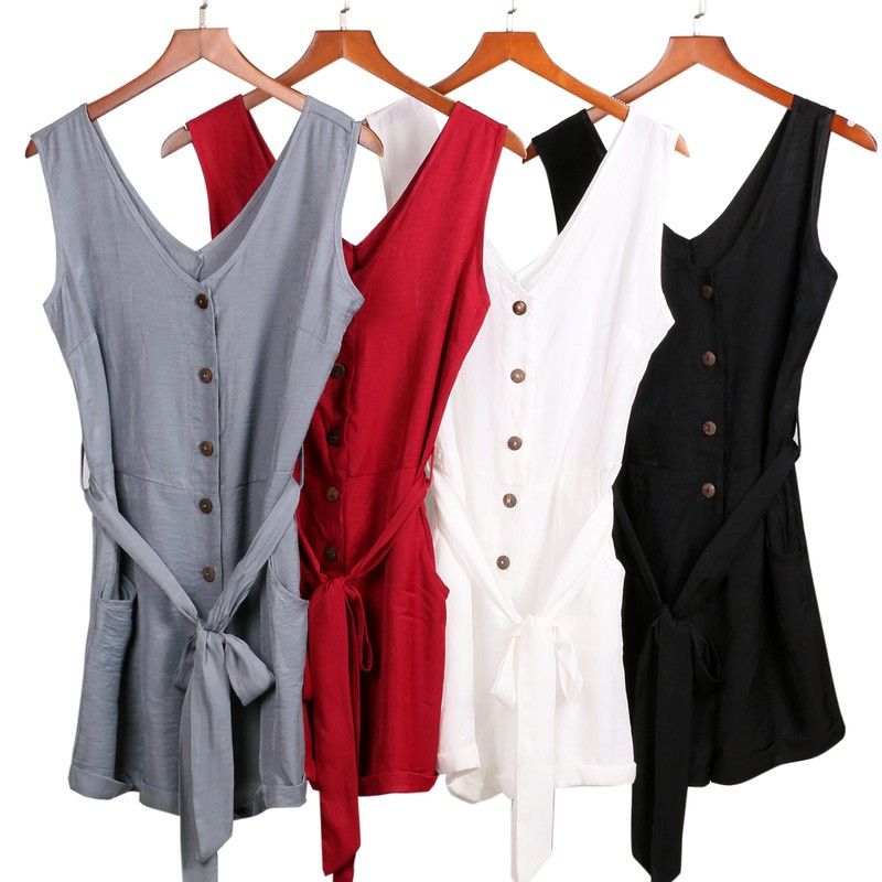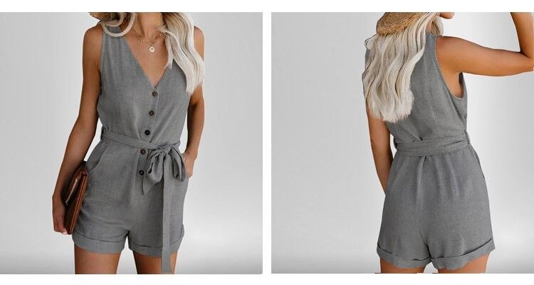 Mulheres Verão Roupas Fora Do Ombro Com Cinto Túnica Sleeveles Playsuit Sólido Casual Com Decote Em V Curto Casa Macacão Mais recentes Dropshipping