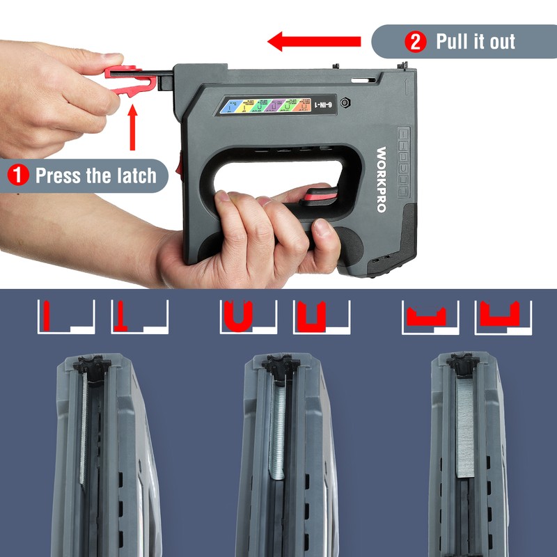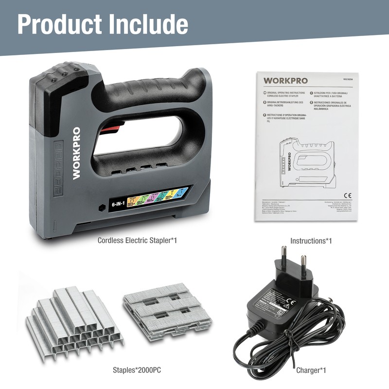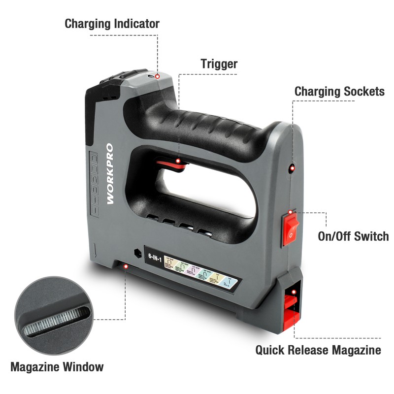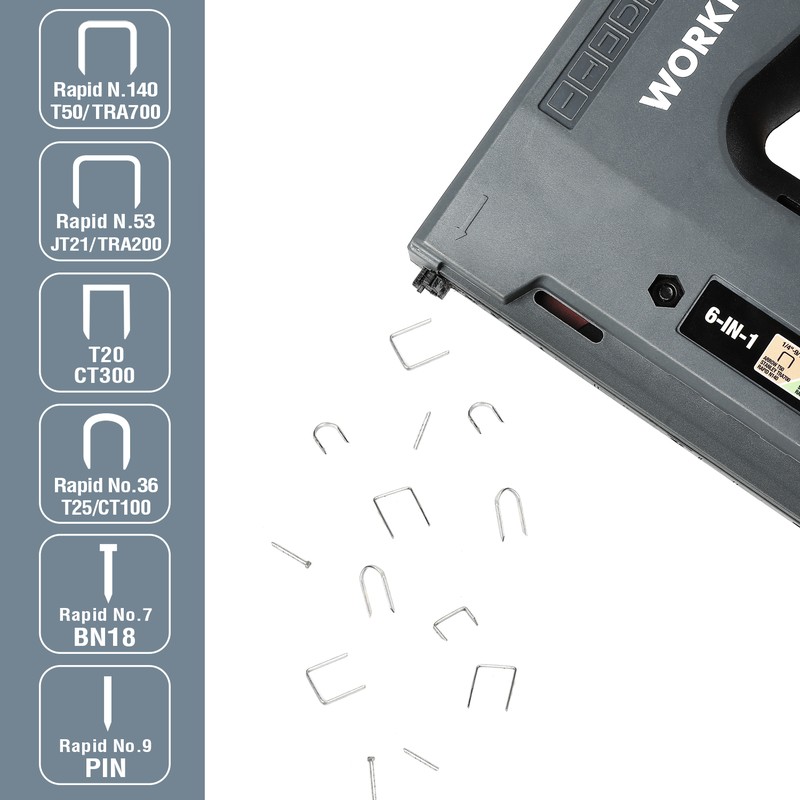 Workpro Grampeador Elétrico 3.6V De Lítio-Íon Sem Fio Resistente Pistola De Pregos Grampeador 6In1 Nailer Furniture Tool Grampeador Quadro De Madeira