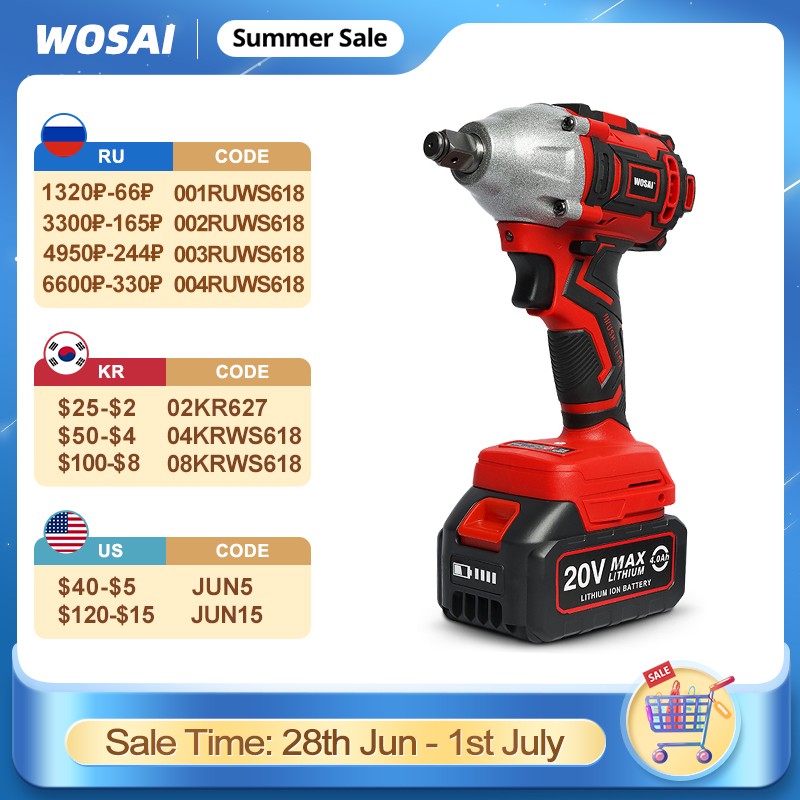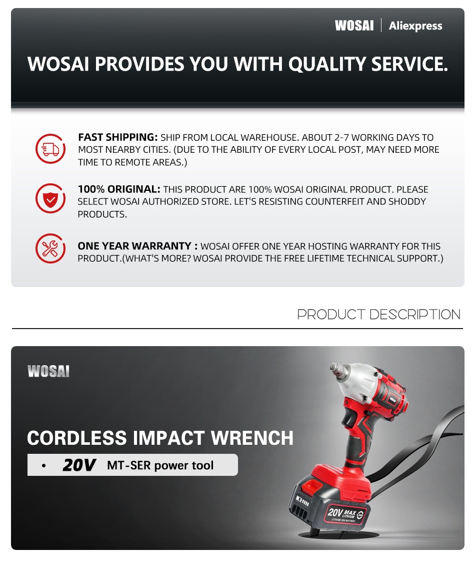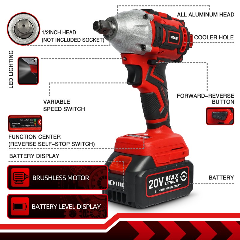 Wosai 20V Sem Fio Sem Escova Elétrica Chave De Impacto Chave De Soquete 320N. M Bateria Li-Ion Mão Broca Instalação