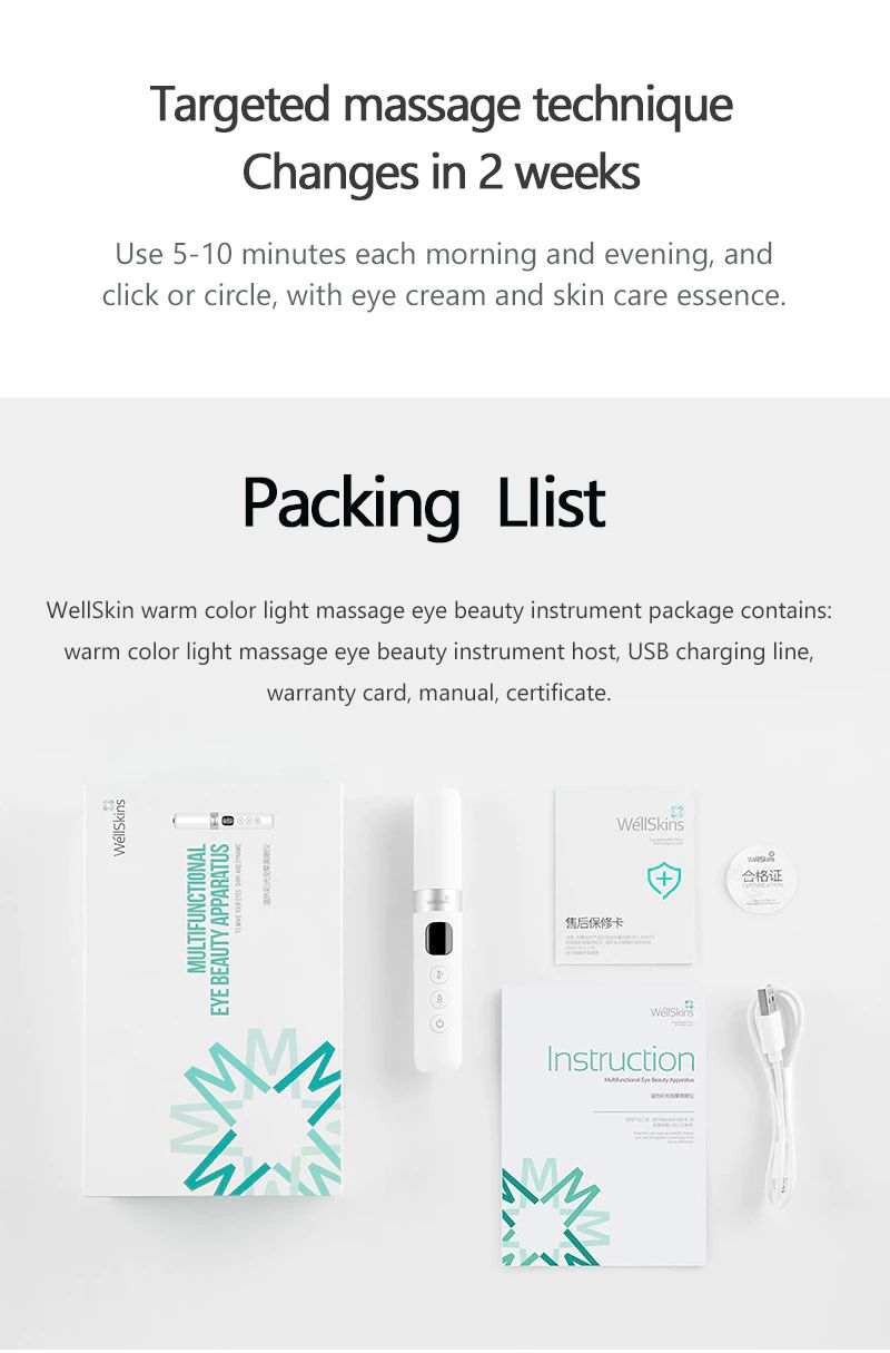 Wellskin cor quente luz massagem olho beleza instrumento pacote contém: