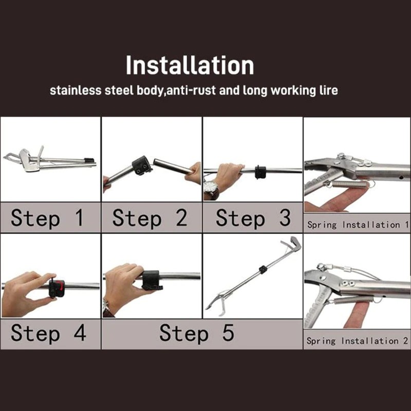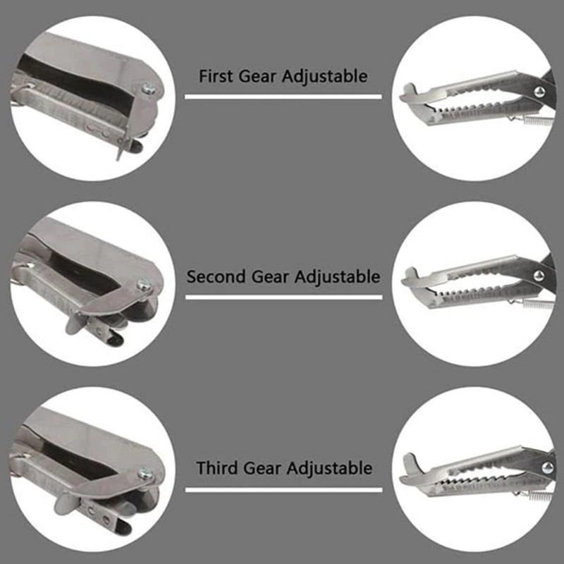 Design exclusivo: o coletor de cobras tem uma grande cabeça de braçadeira de abertura e os dentes em ambos os lados. Caracteriza uma corda de aço de 3mm de espessura com boa dureza e durabilidade e é fixada por rebites de metal de alta qualidade para maior estabilidade. A função de bloqueio automático pode segurar a cobra sem machucá-lo e evitar escapar.