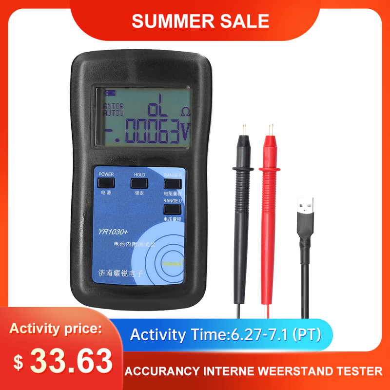 A resolução mínima de até 0.01 miliohms, fácil de testar a grande capacidade, bateria de baixa resistência da taxa de descarga alta. A escala pode ser 200 ohms, pode ser medida baterias do botão, 9v laminou a bateria e a outra bateria de baixa capacidade pequena atual alta resistência interna.