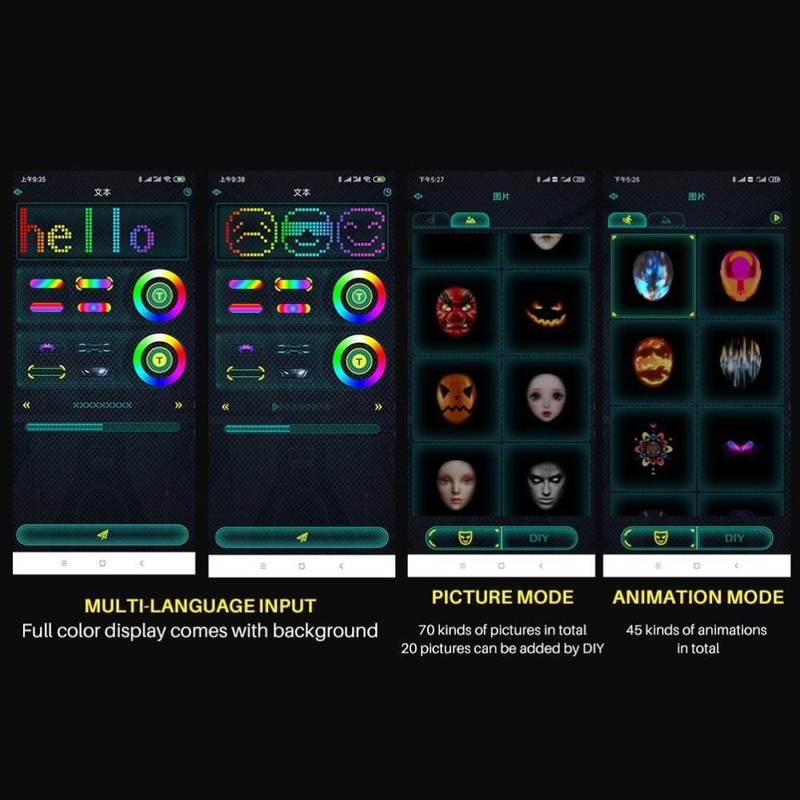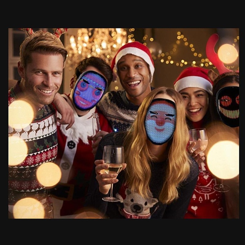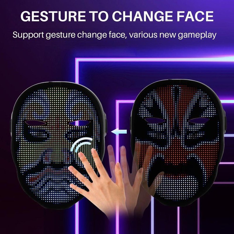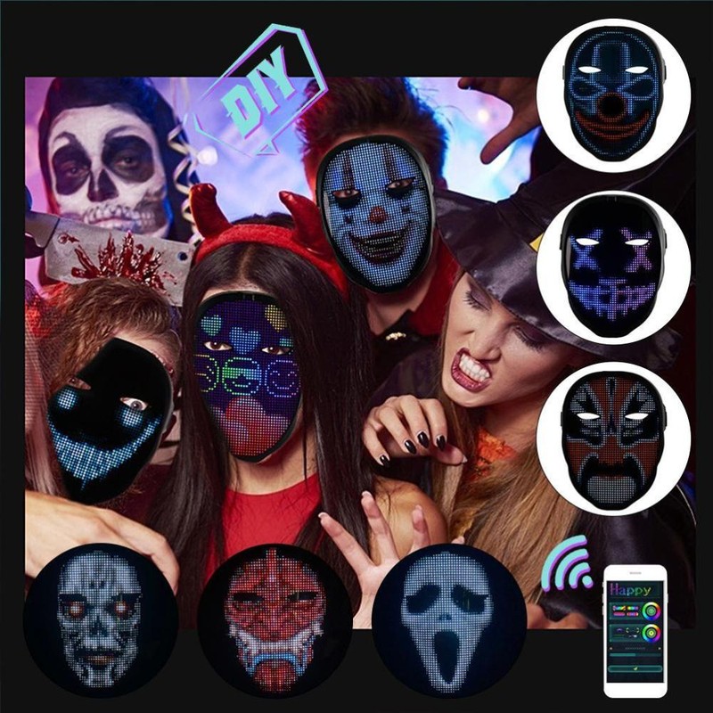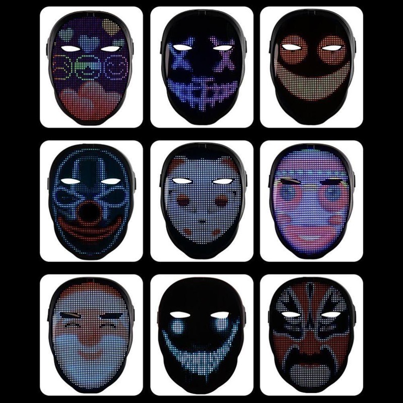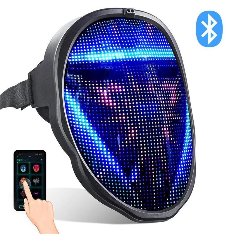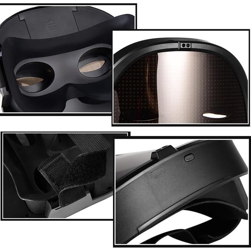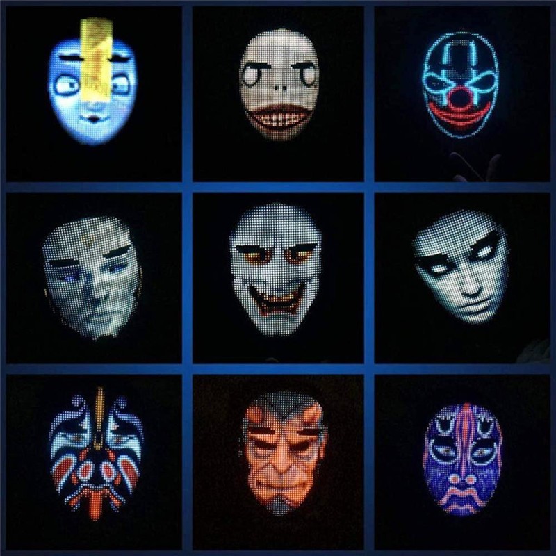 1. led face-changing light-emitting face cover: a capa de rosto de exibição a cores completa adota um design único e tem quatro modos de exibição: edição de texto, graffiti diy, animação padrão e ritmo de música. Você pode se conectar ao seu telefone com um escudo led piscando através do aplicativo bluetooth e, em seguida, se destacar em qualquer festa ou festival.