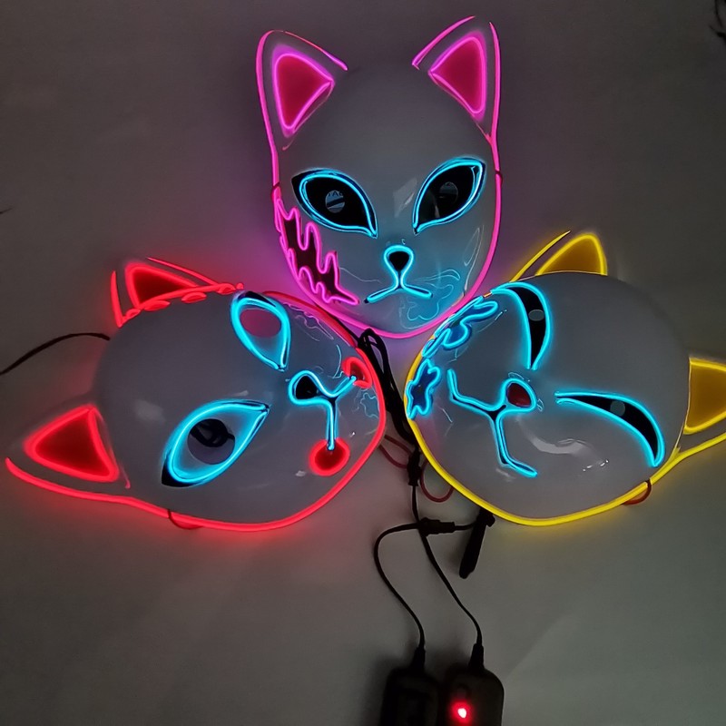 Z2 Adereços Traje Neon Led Luminoso Coringa Máscara Carnaval Festival Acender Diy Imagem Animação Japonês Máscara De Raposa Halloween Xms