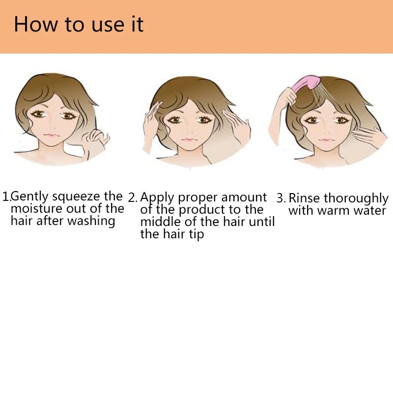 Applyhairmaskonhair,don'ttouchscalp,constantlymassagehairfor2-5minutes