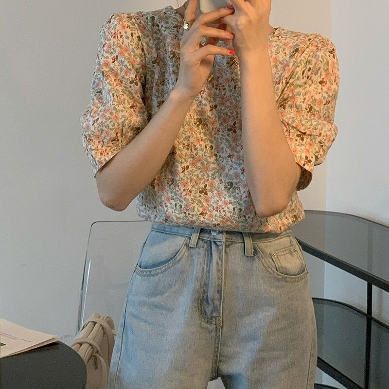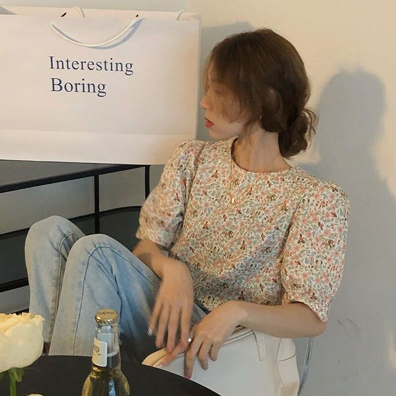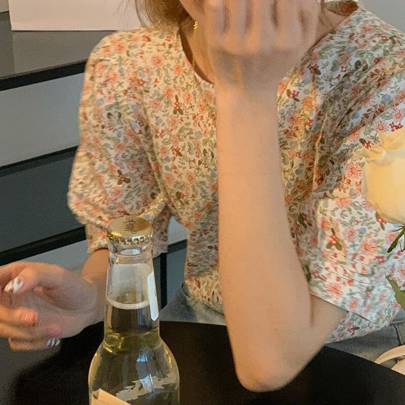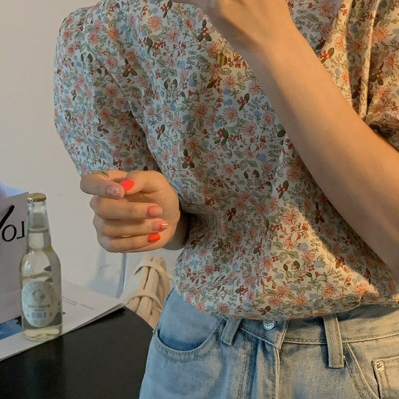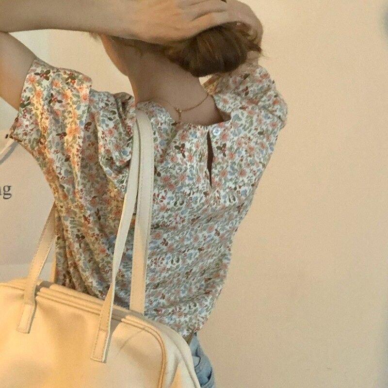 Retro Floral Shirt Female Design Sense Niche Tops Spring Newest New Wild Korean Short-Sleeved Shirt Trend