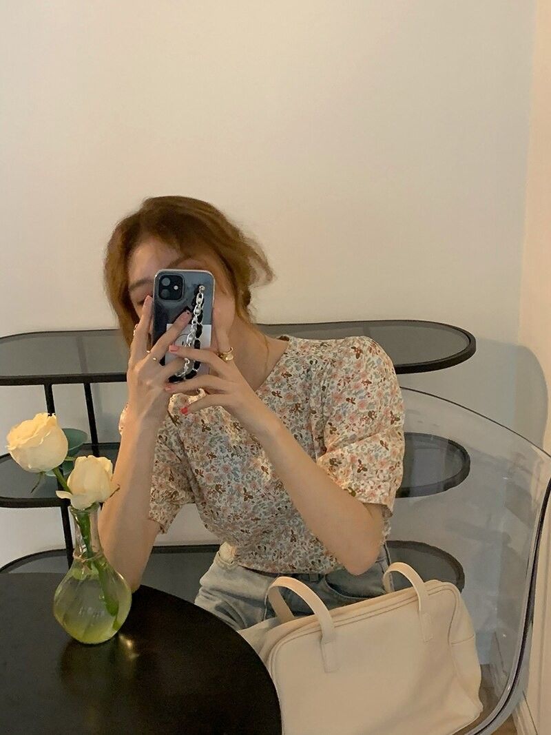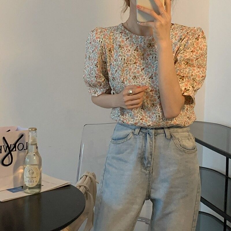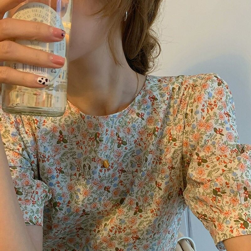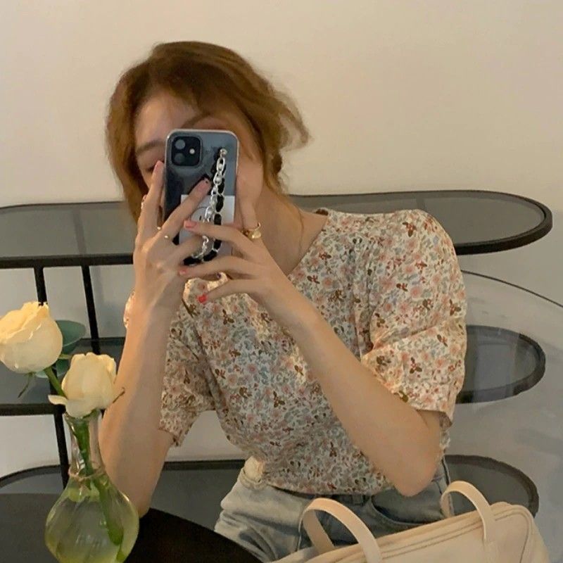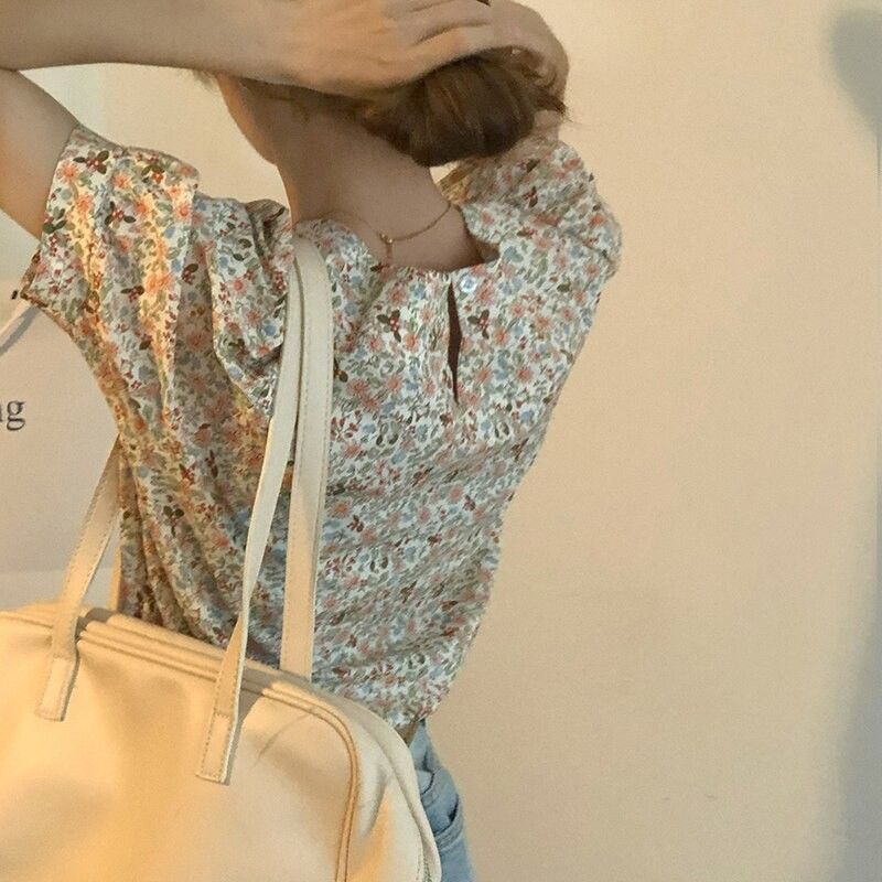 Retro Floral Shirt Female Design Sense Niche Tops Spring Newest New Wild Korean Short-Sleeved Shirt Trend