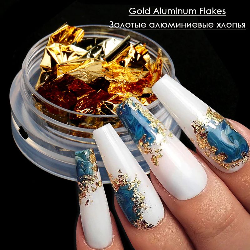 1 Коробка Золотых Блестящих Хлопьев Неправильной Формы Алюминиевая Фольга Блестки Для Ногтей Хромированная Пудра Зимний Маникюр Украшения Для Ногтей Ly1858-1