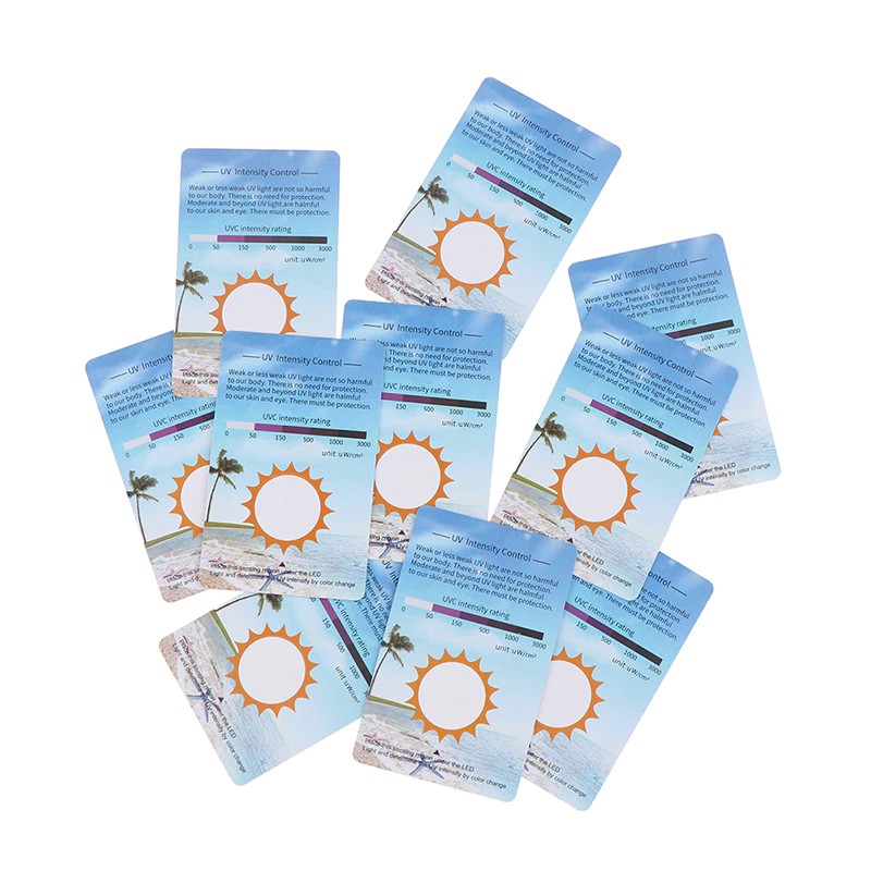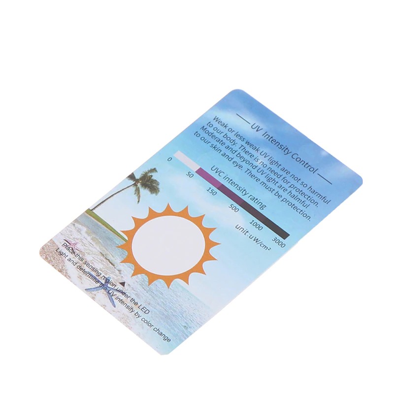 Карта содержит тест-полоски цвета UVB, которые могут определять уфв-прочность трансформации окружающей среды.