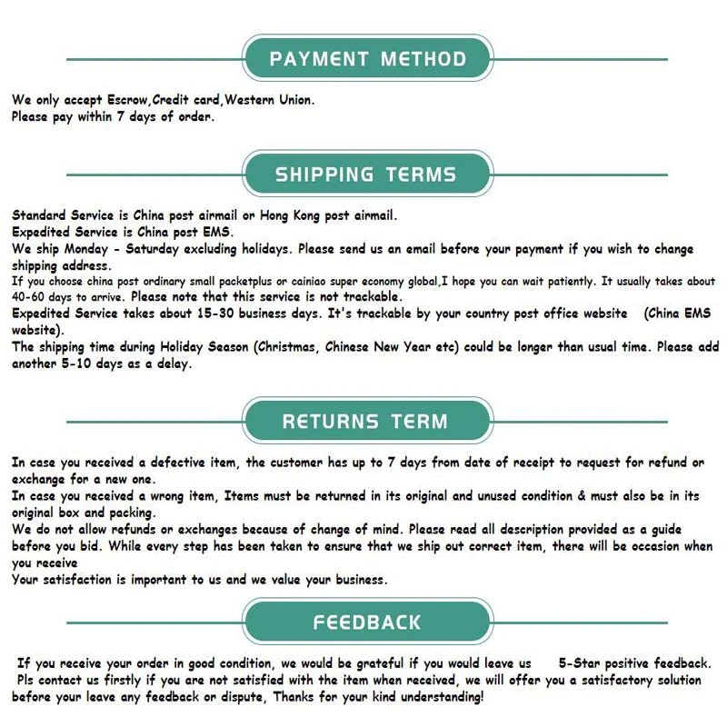 3. Из-за длительной доставки товар может быть поврежден при транспортировке, если товар поврежден, пожалуйста, свяжитесь с нами, прежде чем оставить отзывы, спасибо за понимание.