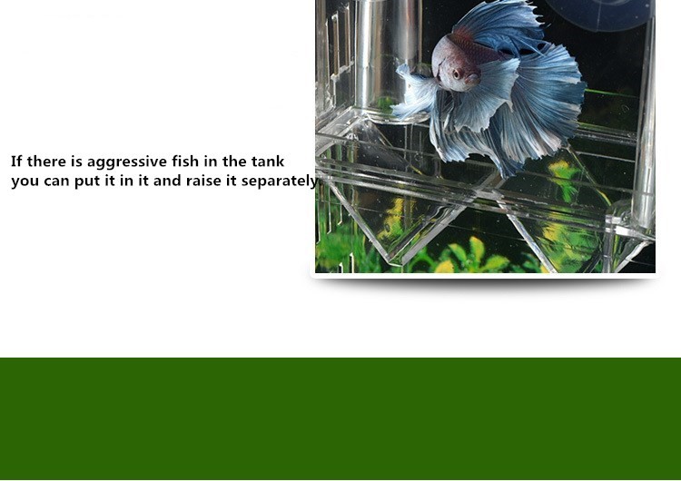 Практичный и прочный продукт для домашнего использования Может использоваться в качестве нерестилища для животных рыб. Предотвращает нападение взрослой рыбы, чтобы повысить выживаемость молодых рыб. Функция изоляции: может изолировать агрессивную рыбу, поврежденную рыбу или мелкую рыбу. Уникальный прозрачный дизайн чехла, предотвращающий выпрыгивание рыбы из коробки. Присоски высокого качества можно использовать для удобной фиксации изделия. Плавающая конструкция, комбинация двух слоев, экономия места.