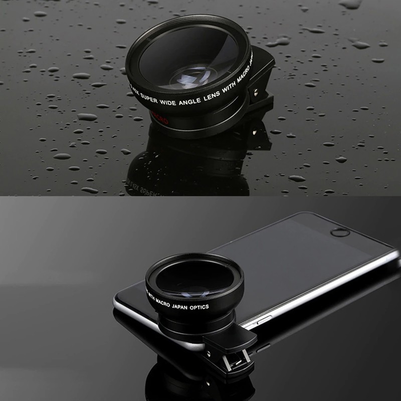 Универсальный объектив 2 в 1 с зажимом 37 мм мобильный телефон, Профессиональный широкоугольный объектив 0.45x 49uv + Macro HD для iPhone и Android