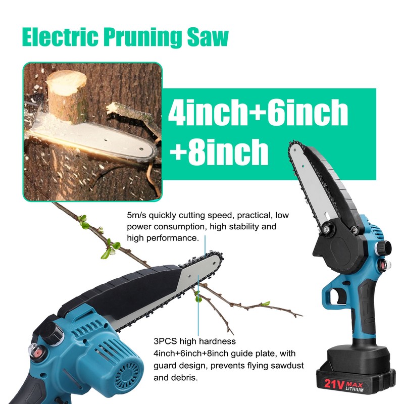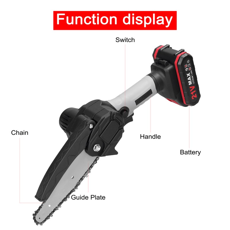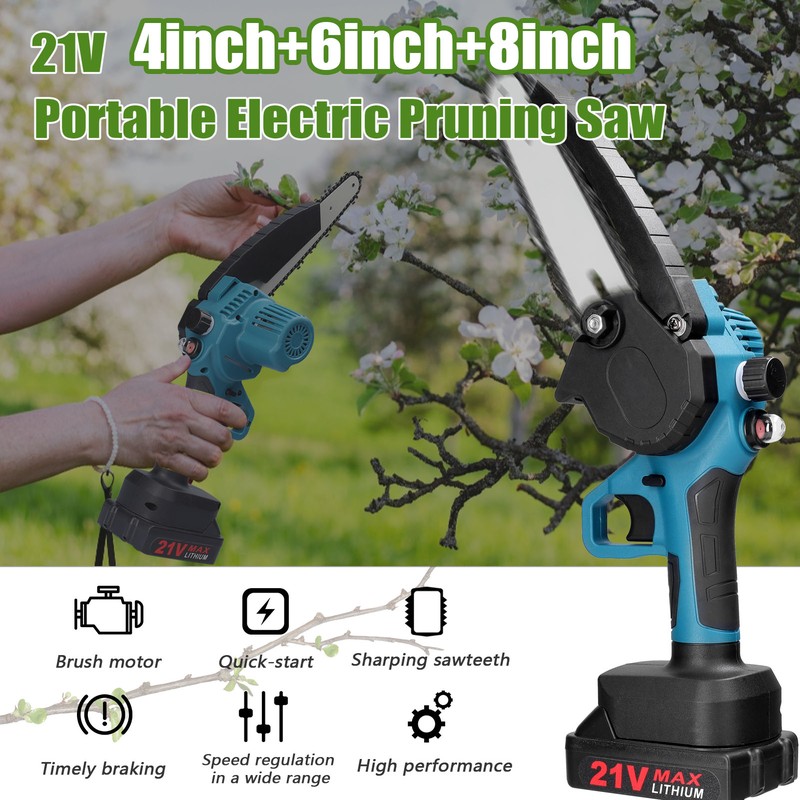 Беспроводная электрическая пила для обрезки является легкой и портативной для легкой работы с одной рукой, которая имеет широкий диапазон применения, такие как резка древесины, обрезка деревьев и многие другие садовые работы.