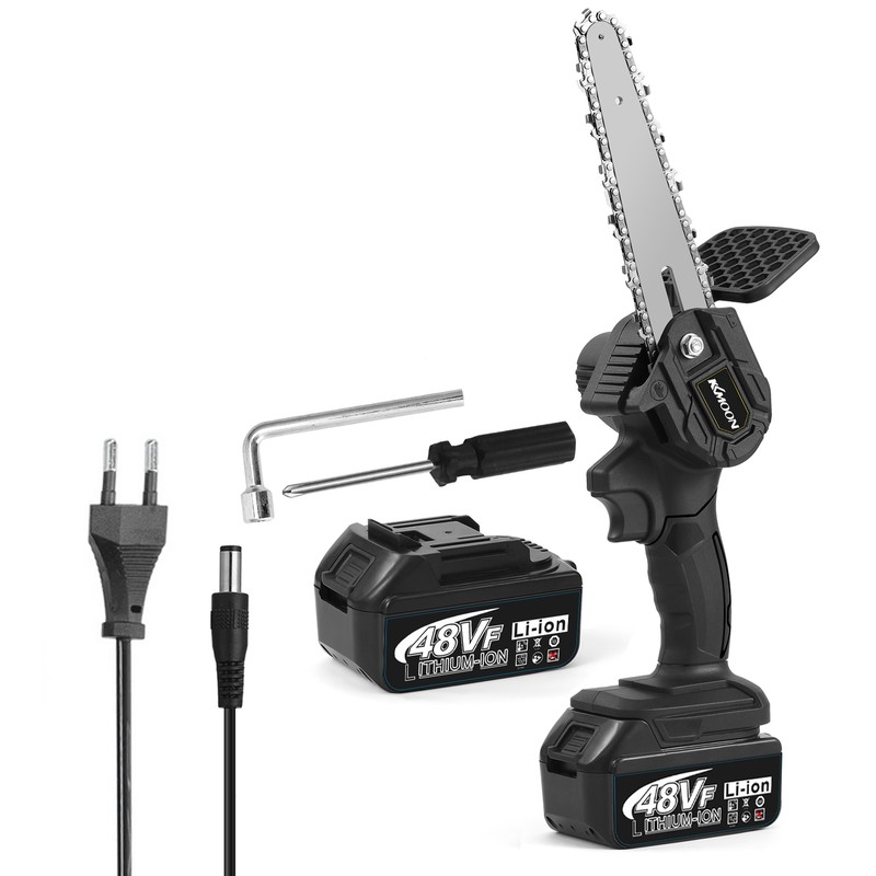 Аккумуляторная батарея в комплекте: бензопила оснащена двумя мощными перезаряжаемыми литиевыми батареями большой емкости, которые поддерживают вашу непрерывную работу.