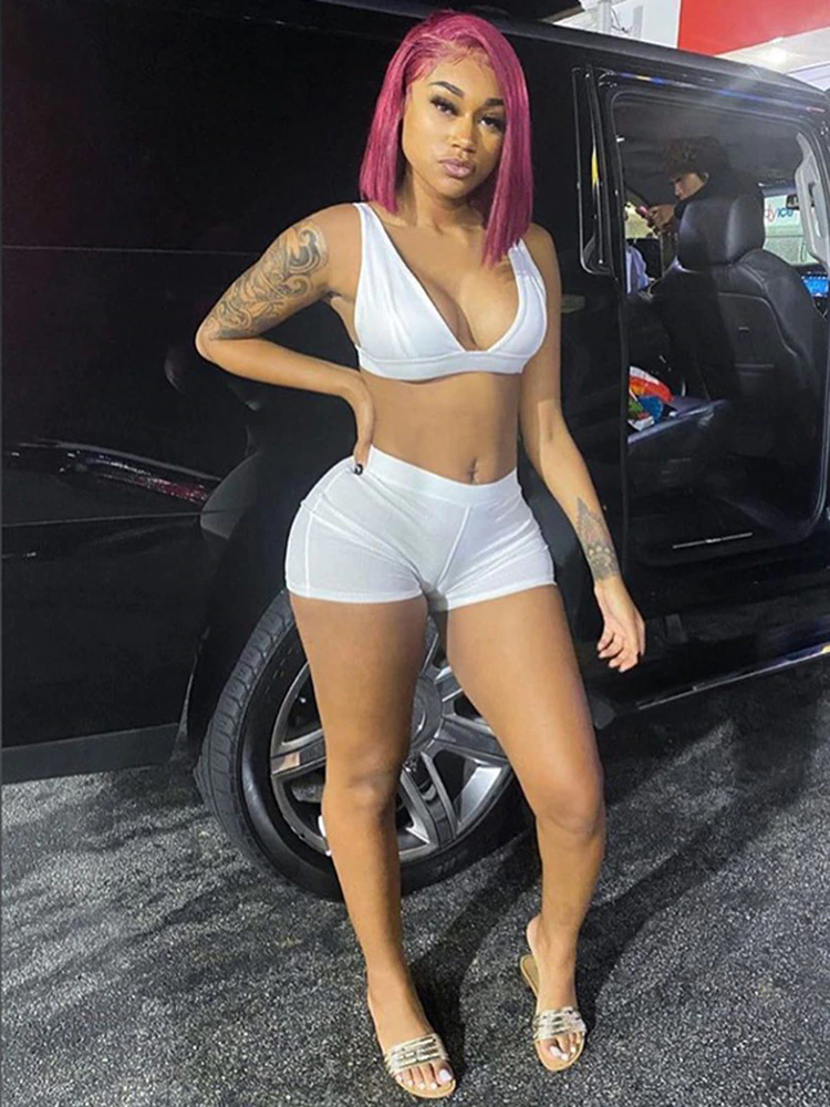 2 Шт./Компл. Пикантные Женские Майки Без Рукавов На Бретелях, Укороченные Топы, Шорты С Высокой Талией Брюки Спортивный Костюм, Лето Новейшие