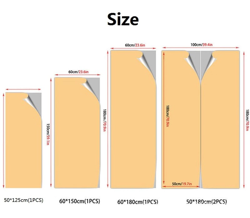 Размер: 50x125 см, 60x150 см, 60x180 см, 100x180 см (2 шт. x 50 см x 180 см)