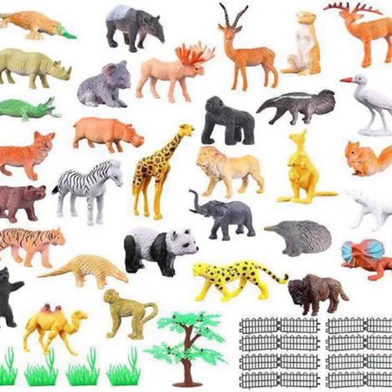 53 шт./компл. игрушки животных джунглей (32 диких животных без повторения, 17 заборов, 4 травы)