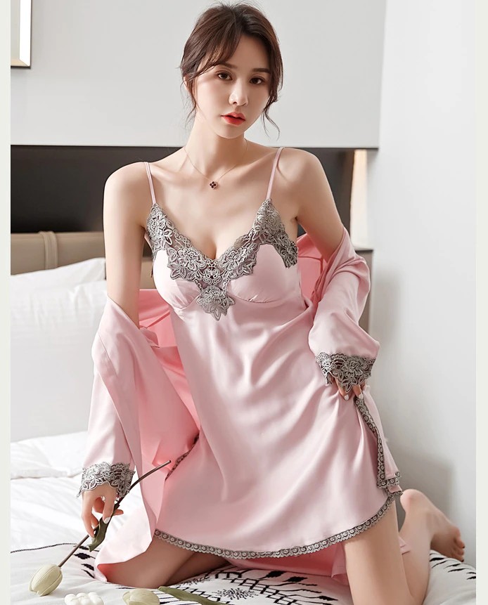 5 шт. шелковый халат, костюм для сна, женский кружевной Атласный пижамный комплект ночная сорочка с V-образным вырезом одежда для сна Пижама, Женская Весенняя ночная рубашка