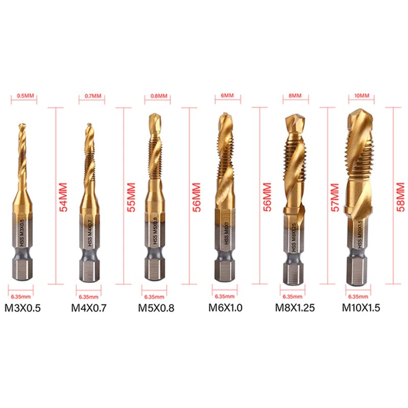 Материал: шестигранный хвостовик с титановым покрытием винт из быстрорежущей стали метрический кран с резьбой