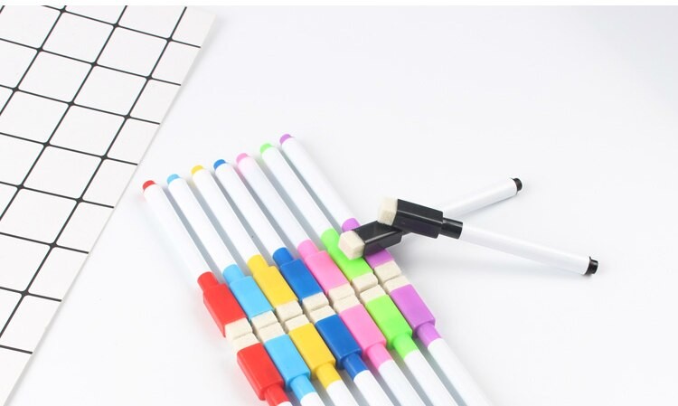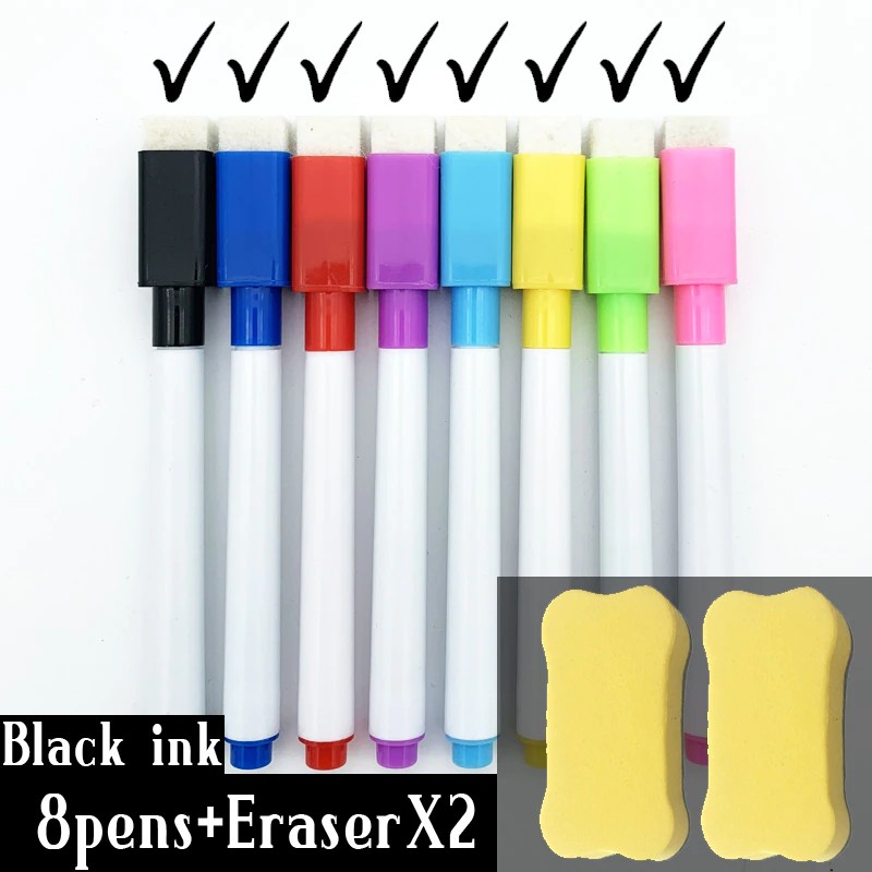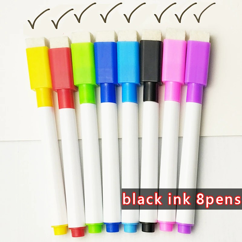 Маркеры для белой доски, 8 шт./лот, цветные черные, со встроенным ластиком