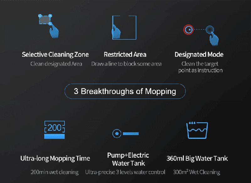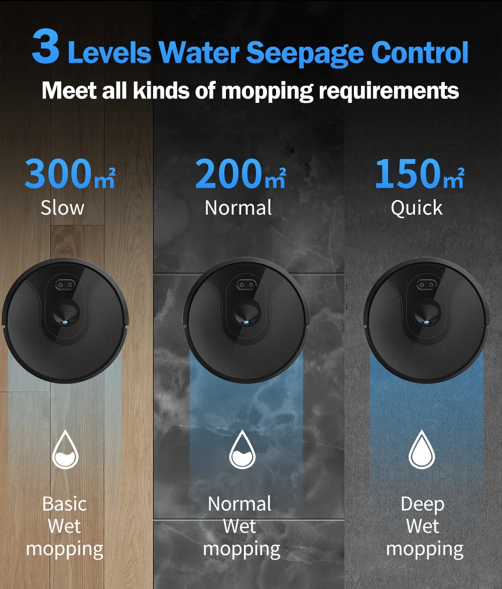 4.X6 имеет контейнер для мусора на 600 мл и резервуар для воды с электрическим насосом на 360 мл. Вы можете настроить мощность всасывания и скорость подачи воды в приложении.