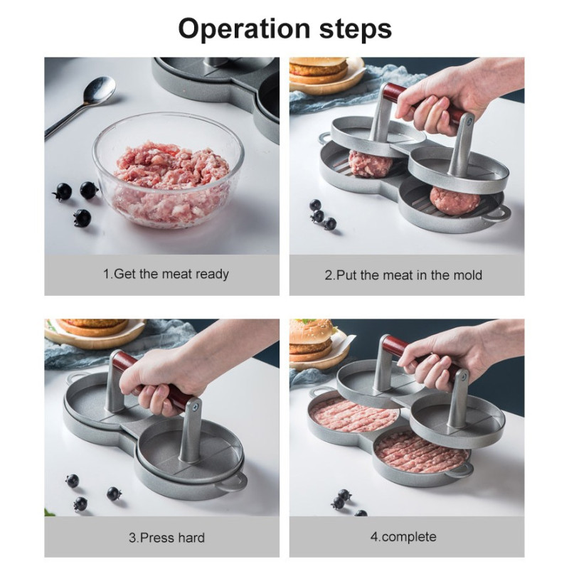 2. Просто загрузите бургер с мясом, рыбой или Овощной смесью и нажмите на ручку, чтобы произвести идеальный Толстый Круглый бургер.