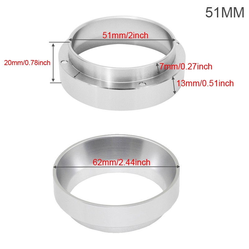 2. Что касается размера, мы отметили 3 размера: 51 мм, 53 мм, 58 мм. Перед покупкой Измерьте диаметр внутреннего горлышка кофейной корзины. Поскольку кольцо помещается в кофейную корзину (53 мм подходит для фильтра 54 мм). Как показано ниже.