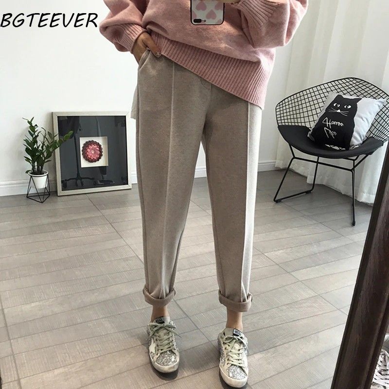 Брюки-Карандаш Женские Зимние Шерстяные, С Завышенной Талией