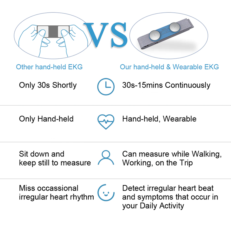 Для слабого сигнала для некоторых людей, вы можете использовать ножной или грудной поводок, а мягкий нагрудный ремень с высококачественными электродами способствует вам с большими сигналами, чтобы получить надежные данные сердцебиения до 15 минут, вы получите более точную и подробную информацию, чтобы предоставить исходные данные своим врачам для анализа. (Сигнал, как правило, сильнее от грудного свинца или свинца II, чем у свинца I для большинства людей).
