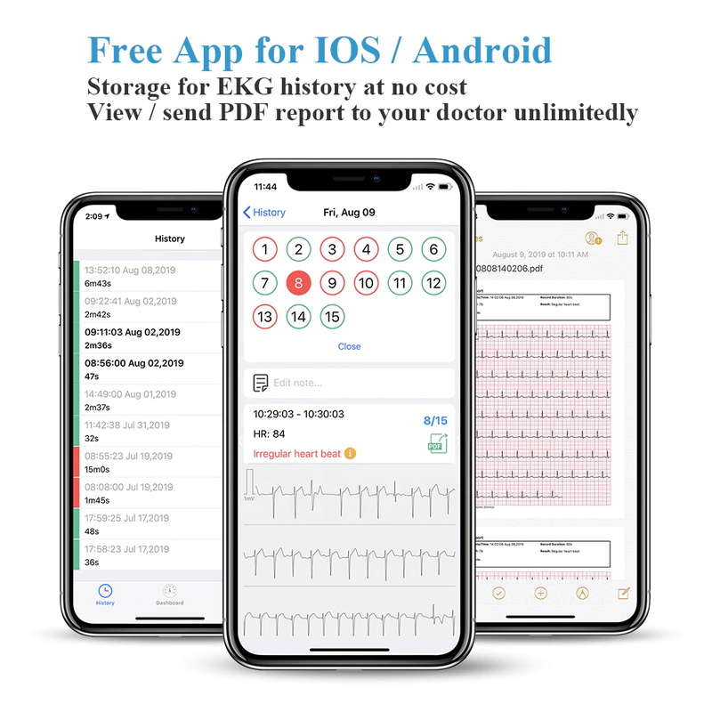 Просто загрузите приложение Vihealth из Google Play или Apple store, а затем вы можете просмотреть данные о сердечном ритме в реальном времени с помощью функции easy connect к приложению через Bluetooth 4,0 BLE. Неограниченное хранилище с историей, которое позволяет вам сверх проверять здоровье сердца с помощью бесплатного приложения без взимания ежемесячной платы за отчет.