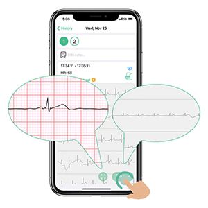 Технология высокопроизводительного фильтра для отображения формы волны с высоким разрешением. Вы также просматриваете свою мгновенную форму волны с помощью функции регулируемой линейки, увеличивая в трех вариантах (0,5 мВ, 1 мВ, 2 мВ).