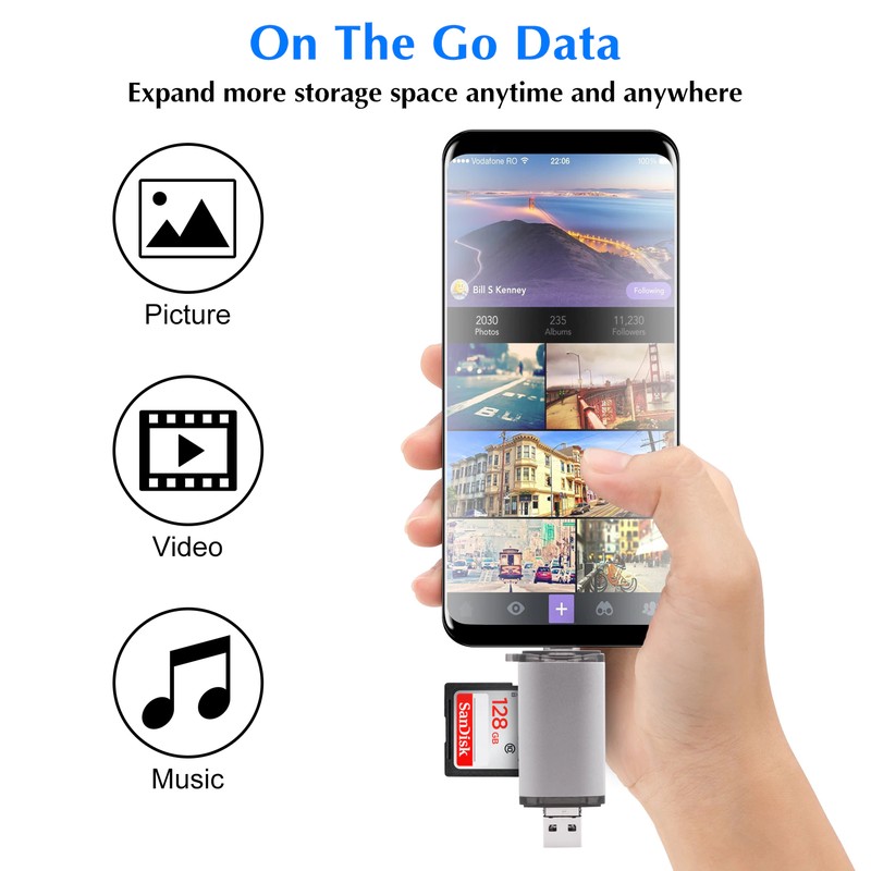 Характеристики продукта: кардридер OTG + внешняя шина USB