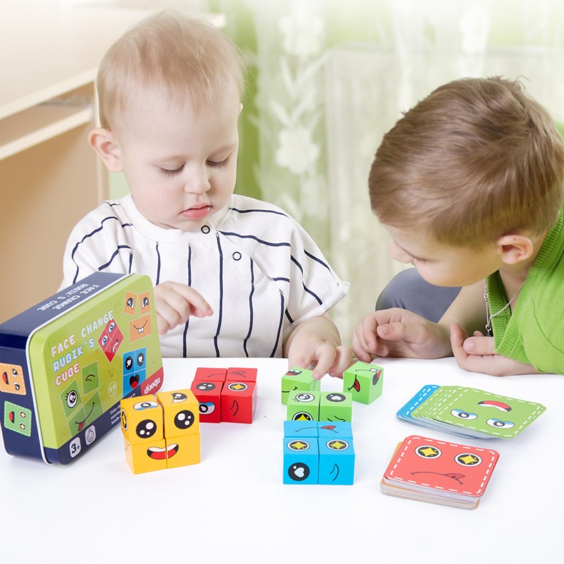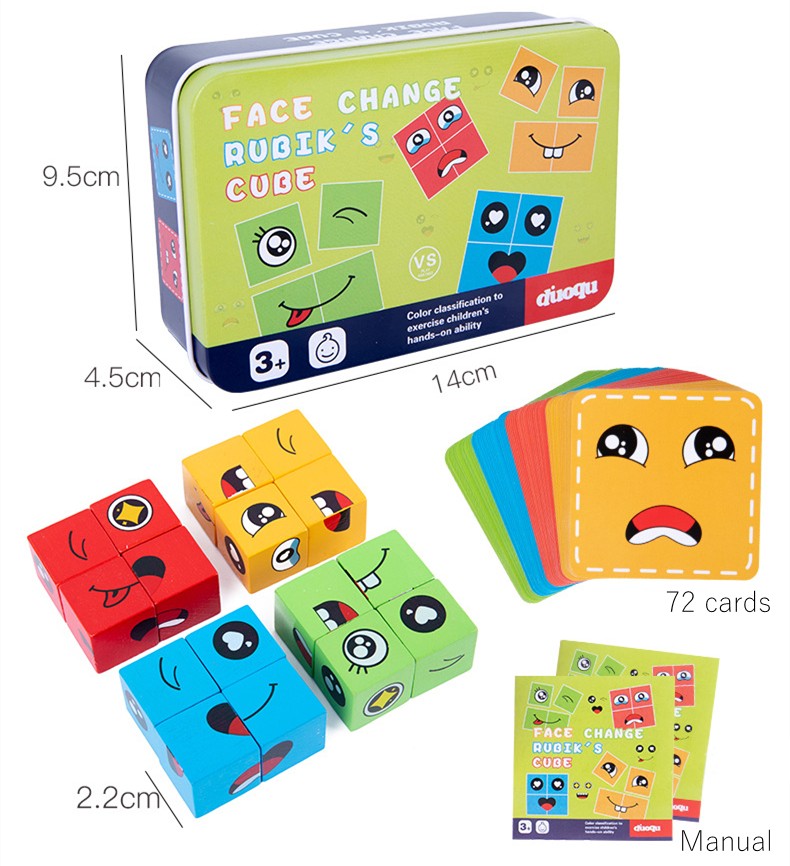 Детский конструктор Монтессори с эмоциями, головоломки с чувством выражений, Детская развивающая карточка, игра с кольцом-колокольчиком