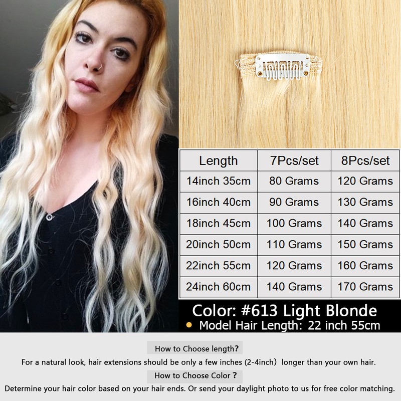 Изделие: волосы для наращивания на заколках; Комплект из 7/8 шт.