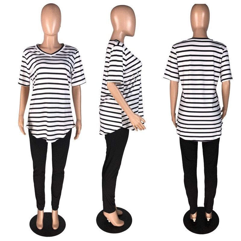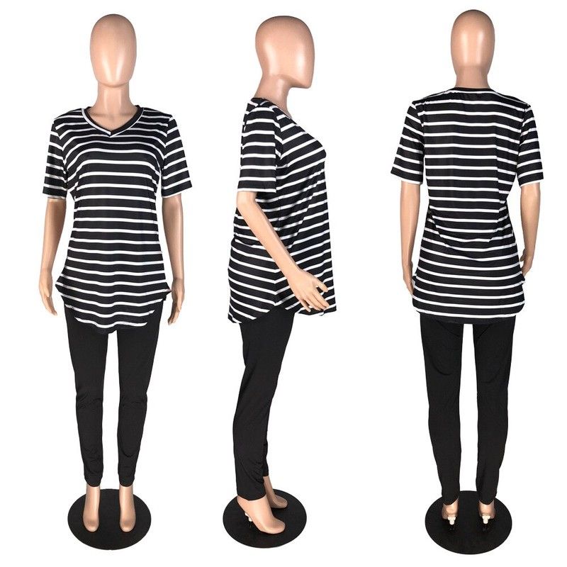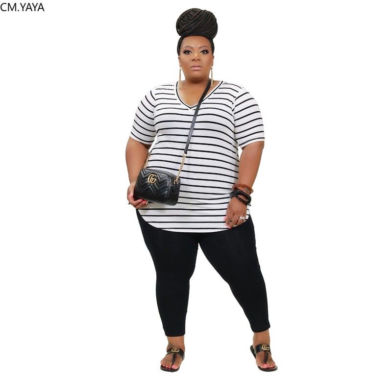 Женский Спортивный Костюм Cm.Yaya Из Двух Предметов, Футболка В Полоску С V-Образным Вырезом И Спортивные Штаны, Большие Размеры, Xl-5Xl