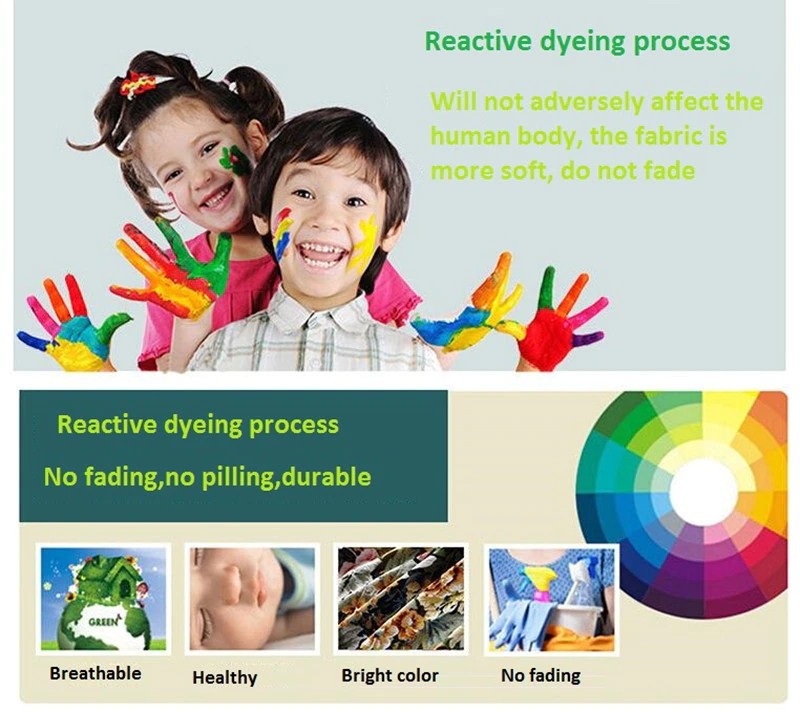 Toda la tela está impresa reactiva, sin decoloración, sin pilling, le brinda una vida sana y libre.