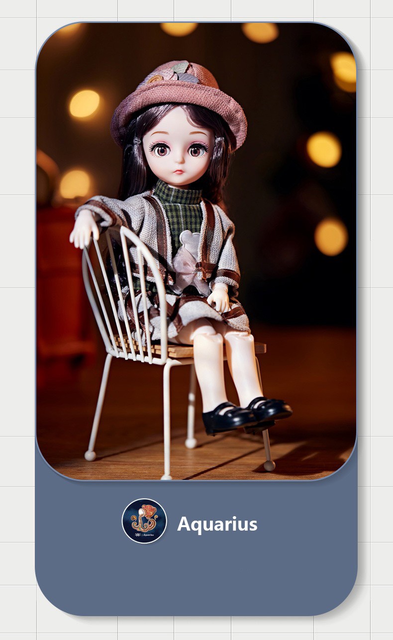 【Features】это 12 созвездий куклы для 12 стилей. Она около 30 см рост, и она носит великолепную одежду, которую мы проектируем для нее. Качество одежды соответствует требованиям человеческой одежды. По сравнению с такими же куклами, у нее есть Богатые детали лица. Кроме того, она имеет 13 разработанных вращающиеся шарниры и может сделать вариант реалистичной позы.