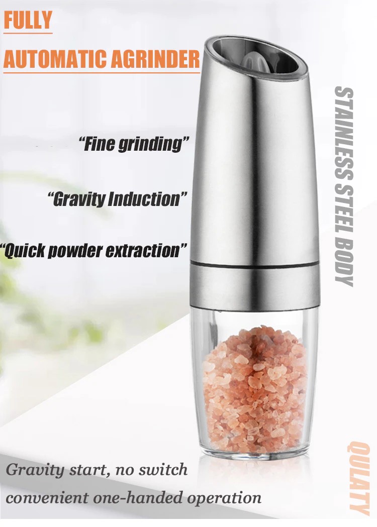Электрические мельницы для соли и перца, автоматическая гравитационная мельница из нержавеющей стали для специй и трав, наборы кухонных приборов с регулируемой грубостью
