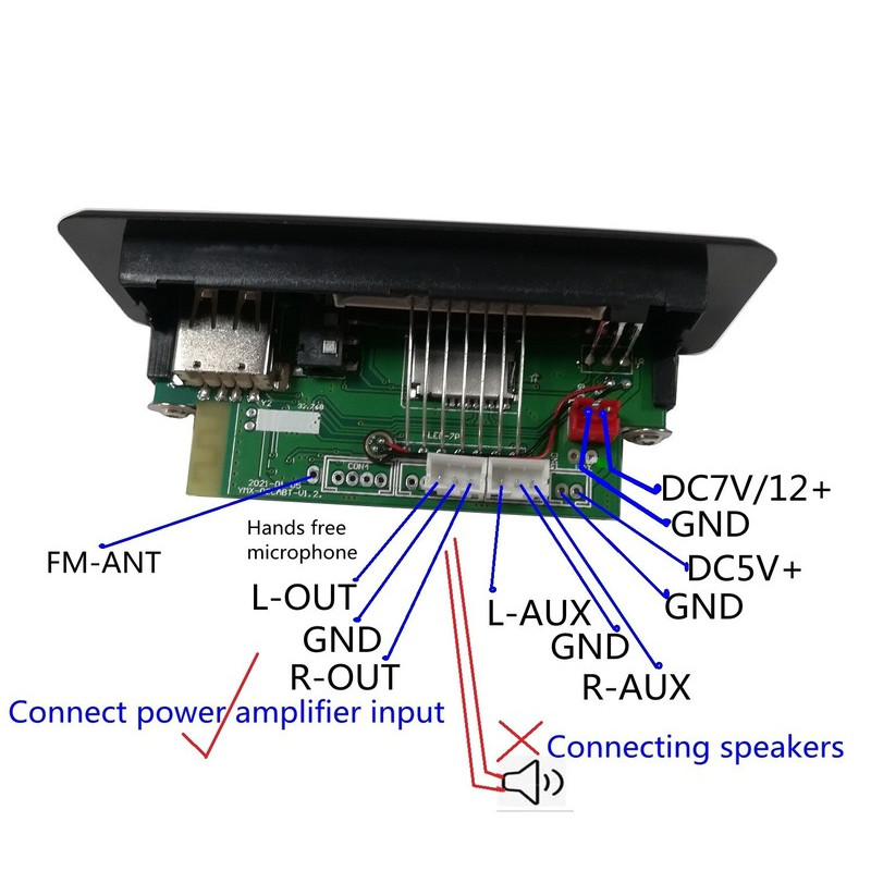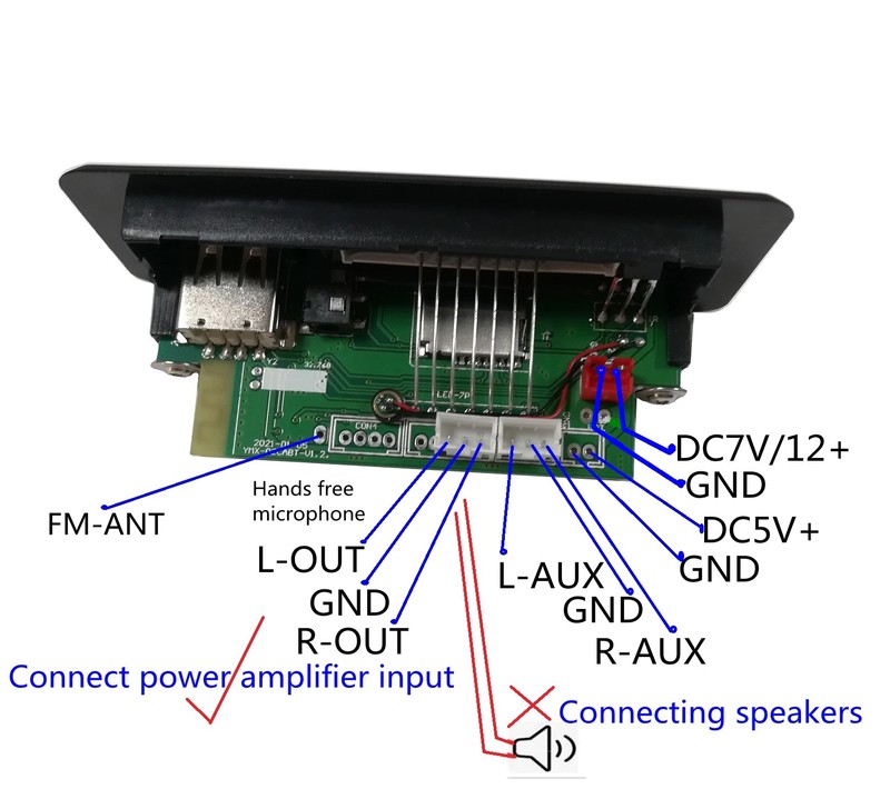 Если ток недостаточно, могут возникнуть нестандартные скачки, сбой пульта дистанционного управления или сбой чтения BT (если есть такая проблема, проверьте источник питания); напряжение не должно быть выше самого высокого значения диапазона напряжения, требуемого изделием; В противном случае, Основной чип и связанные с ним компоненты будут повреждены.
