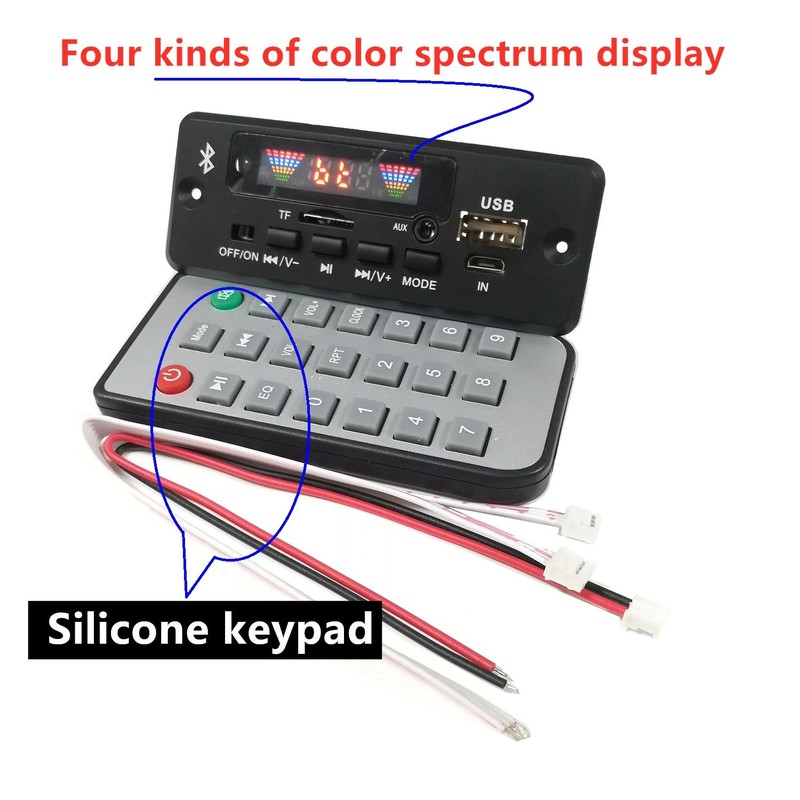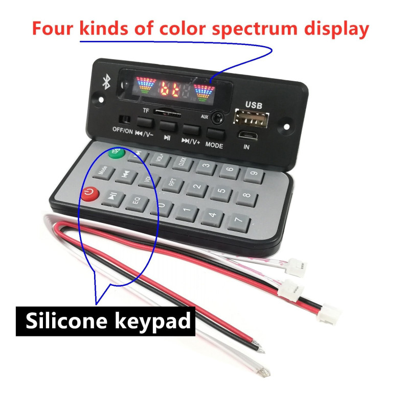Многофункциональность: поддержка функции ответа на телефон в режиме громкой связи, поддержка проигрывателя управления мобильными приложениями (необходимо установить программное обеспечение приложения). 4-цветный дисплей, более подвижный эффект. 3,5 Дополнительный вход; USB / TF воспроизведение MP3 без потерь; APE / WAV и wma / FLAC также могут поддерживать воспроизведение в папках; FM-радио; aux; Стерео Bluetooth. DIY динамик и модифицированный звук/автомобиль, лучшие аксессуары