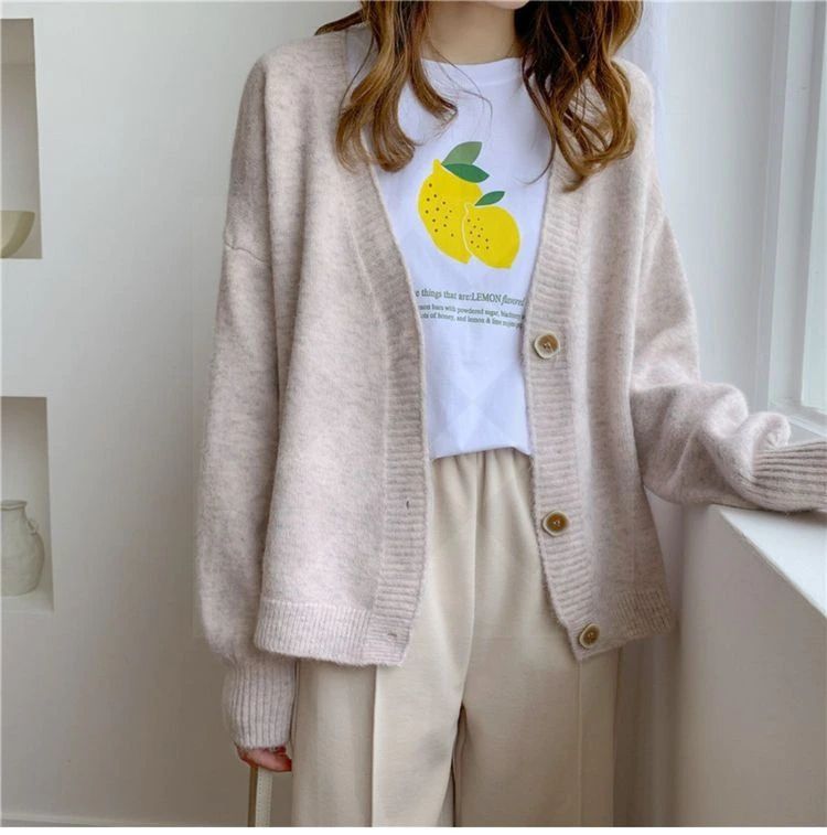 Женский Однотонный Кашемировый Кардиган H.Sa, Повседневный Кардиган В Корейском Стиле, Вязаная Зимняя Куртка, Новейшие