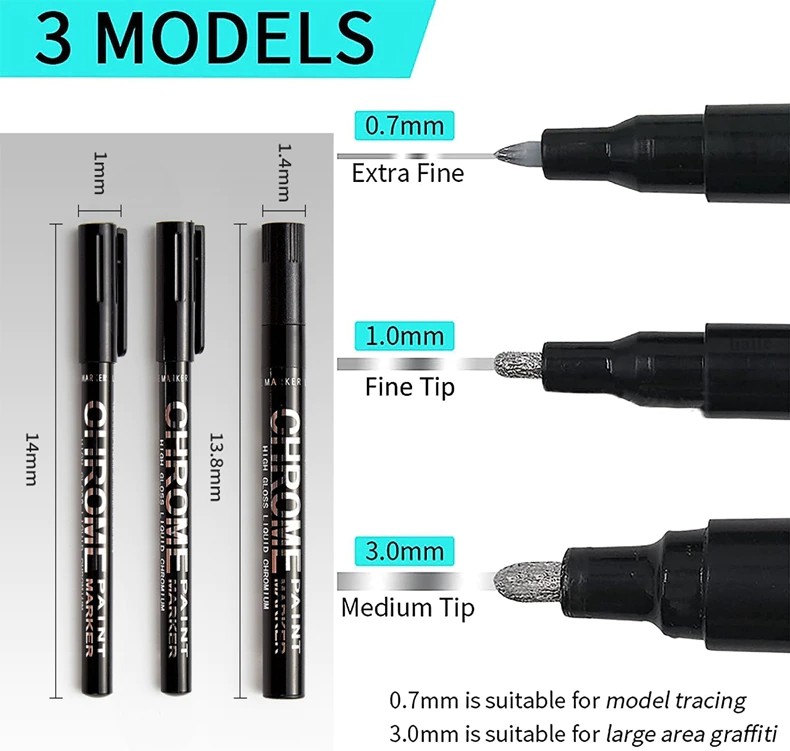 【Зеркальный хром finish】этот маркер на спиртовой основе, высоко пигментированные Специальные чернила создает постоянно глянцевое Настоящее зеркало и очень Непрозрачный эффект, который никогда не может быть достигнут обычным маркером.