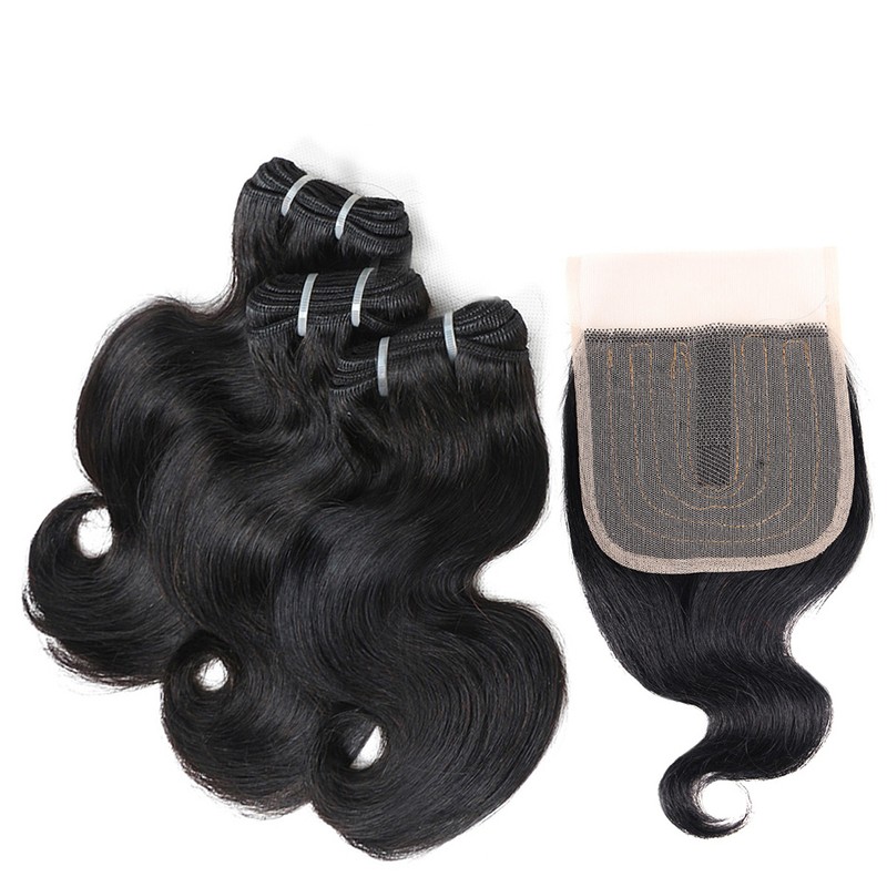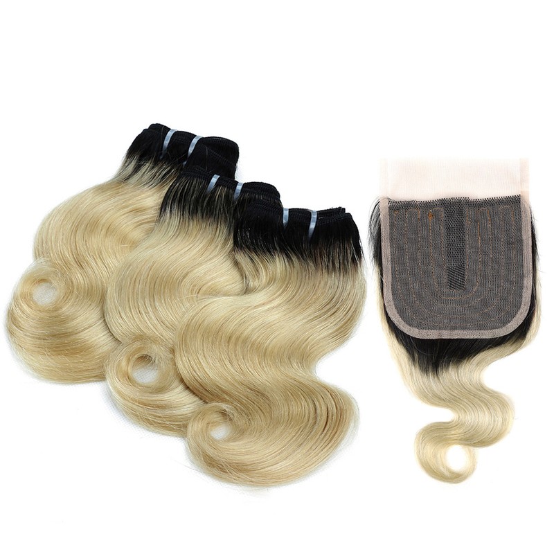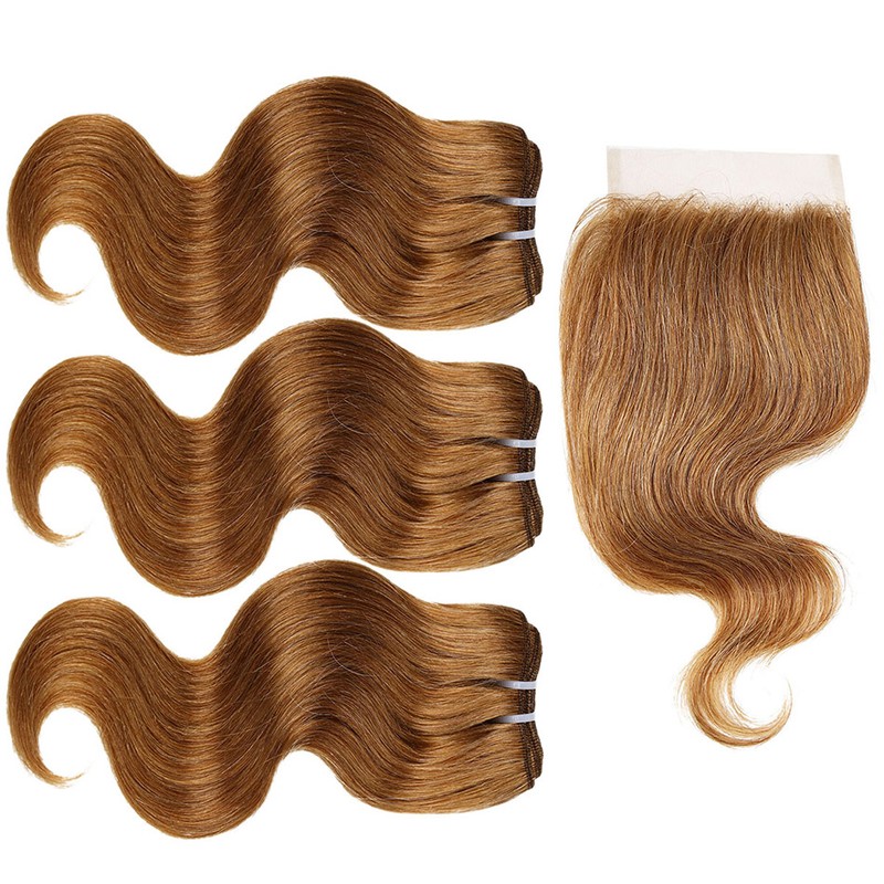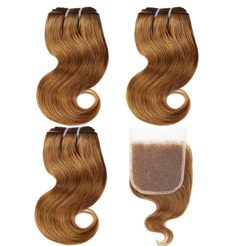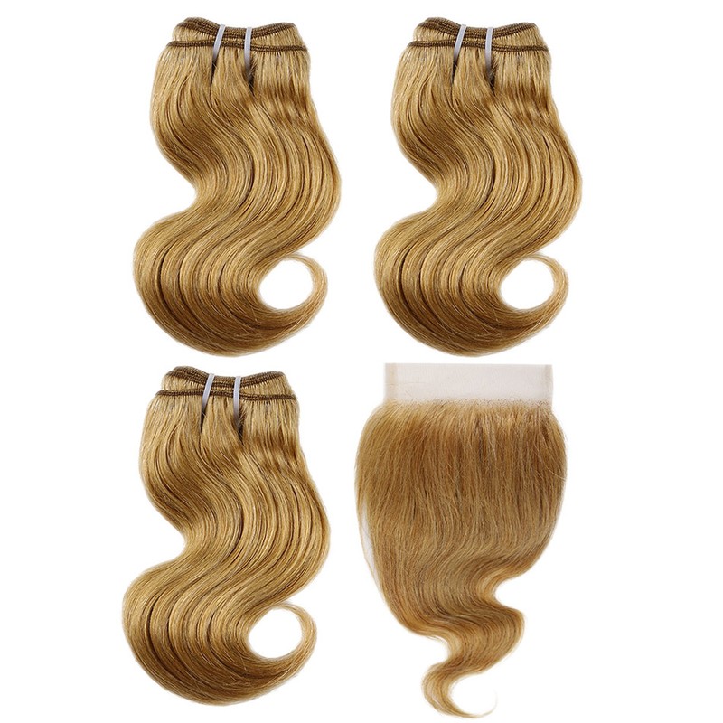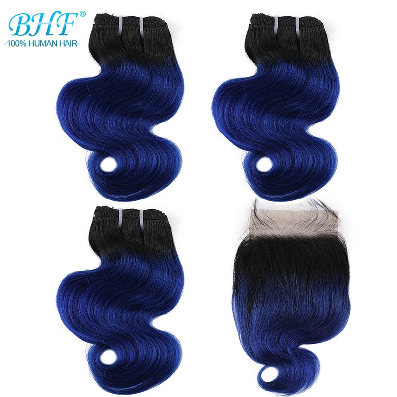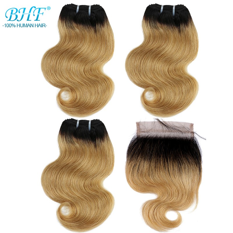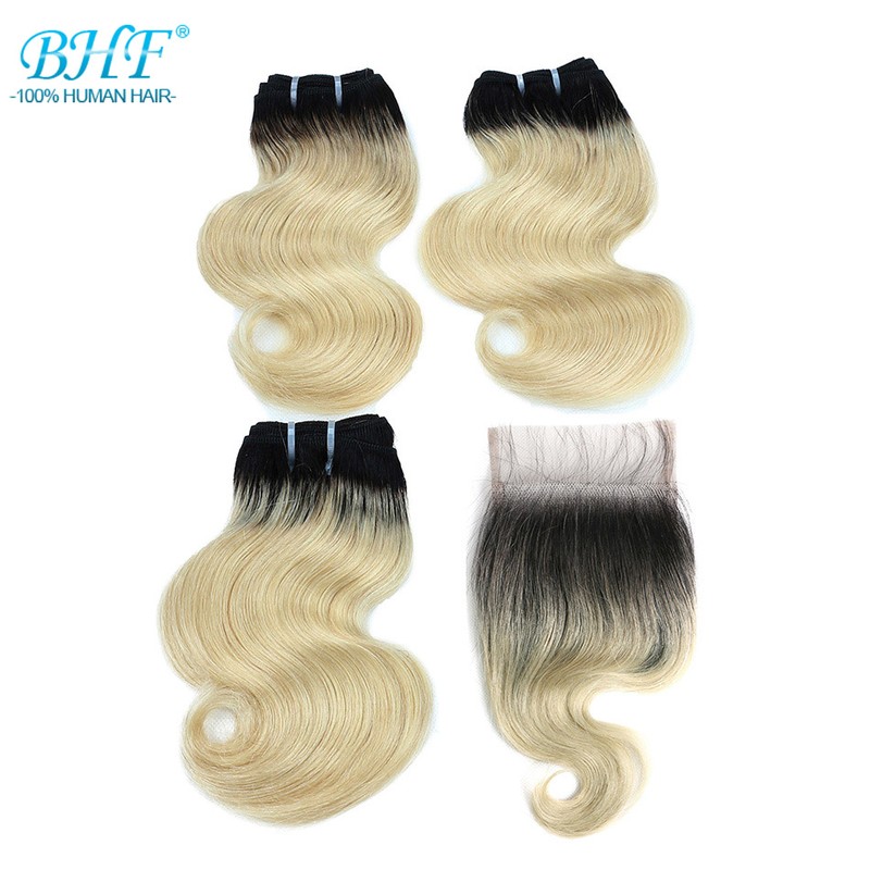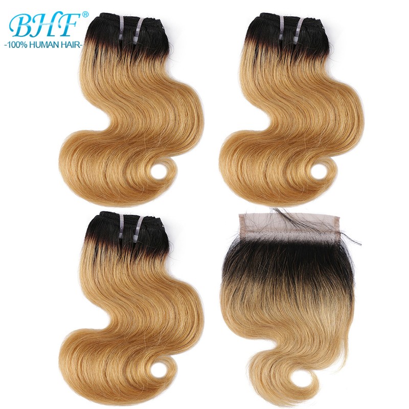 BHF 100% человеческие волосы объемная волна 3 пряди с закрытием бразильские волосы Remy блонд короткий боб парик стиль 50 г в комплекте с 2x4 closre и 4x1 закрытие