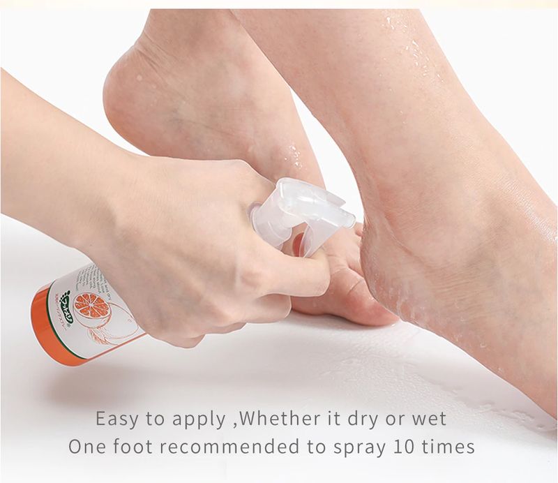 2. Затем нанесите спрей на тяжелую часть омертвевшей кожи стопы.