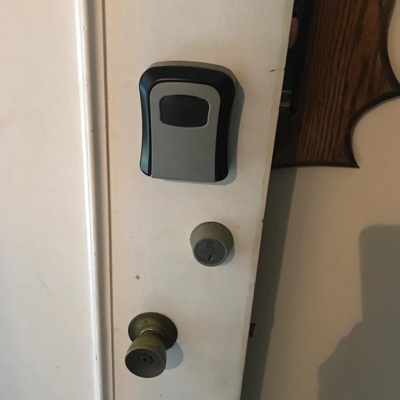 4. Просто вставьте винты и пластиковые расширительные штекеры и Просверлите их к стене или другой твердой поверхности и убедитесь, что он установлен плотно. Дверь замка легко открывается, когда вы используете правильные номера.