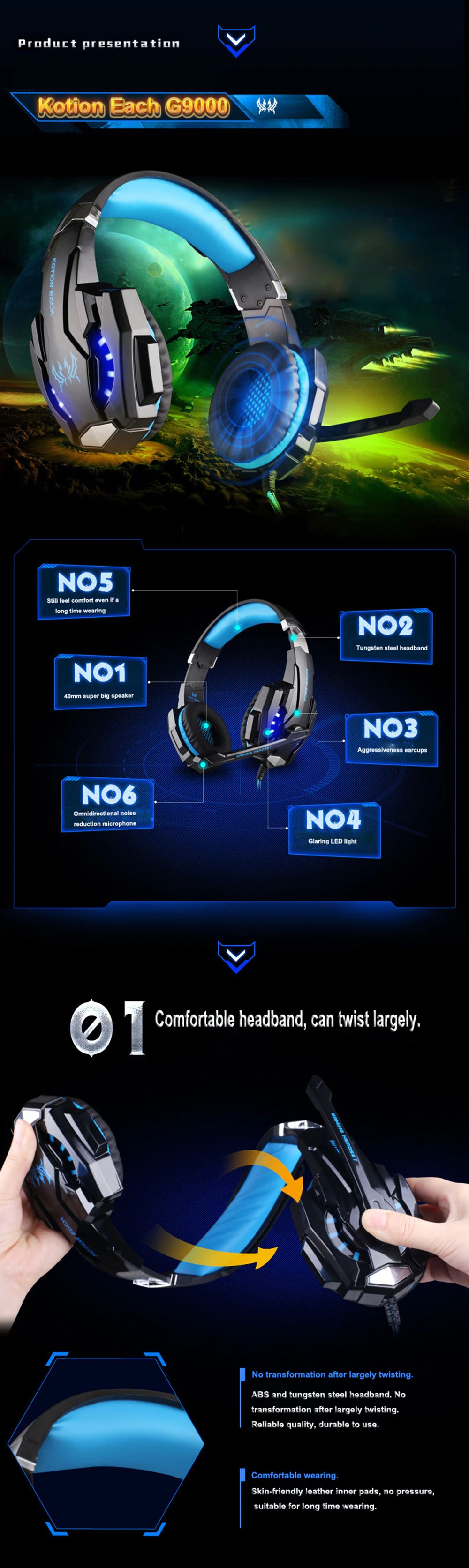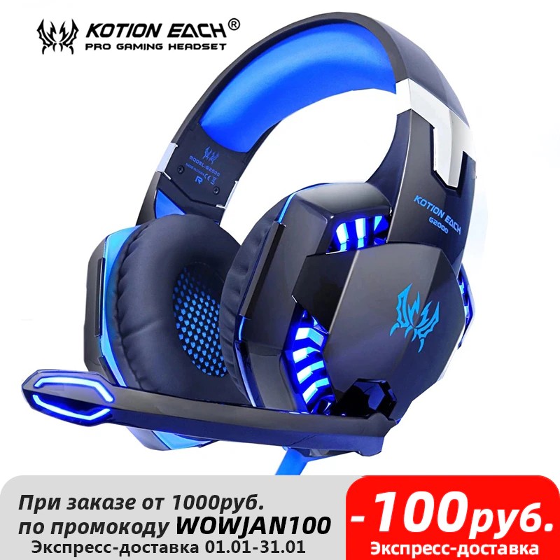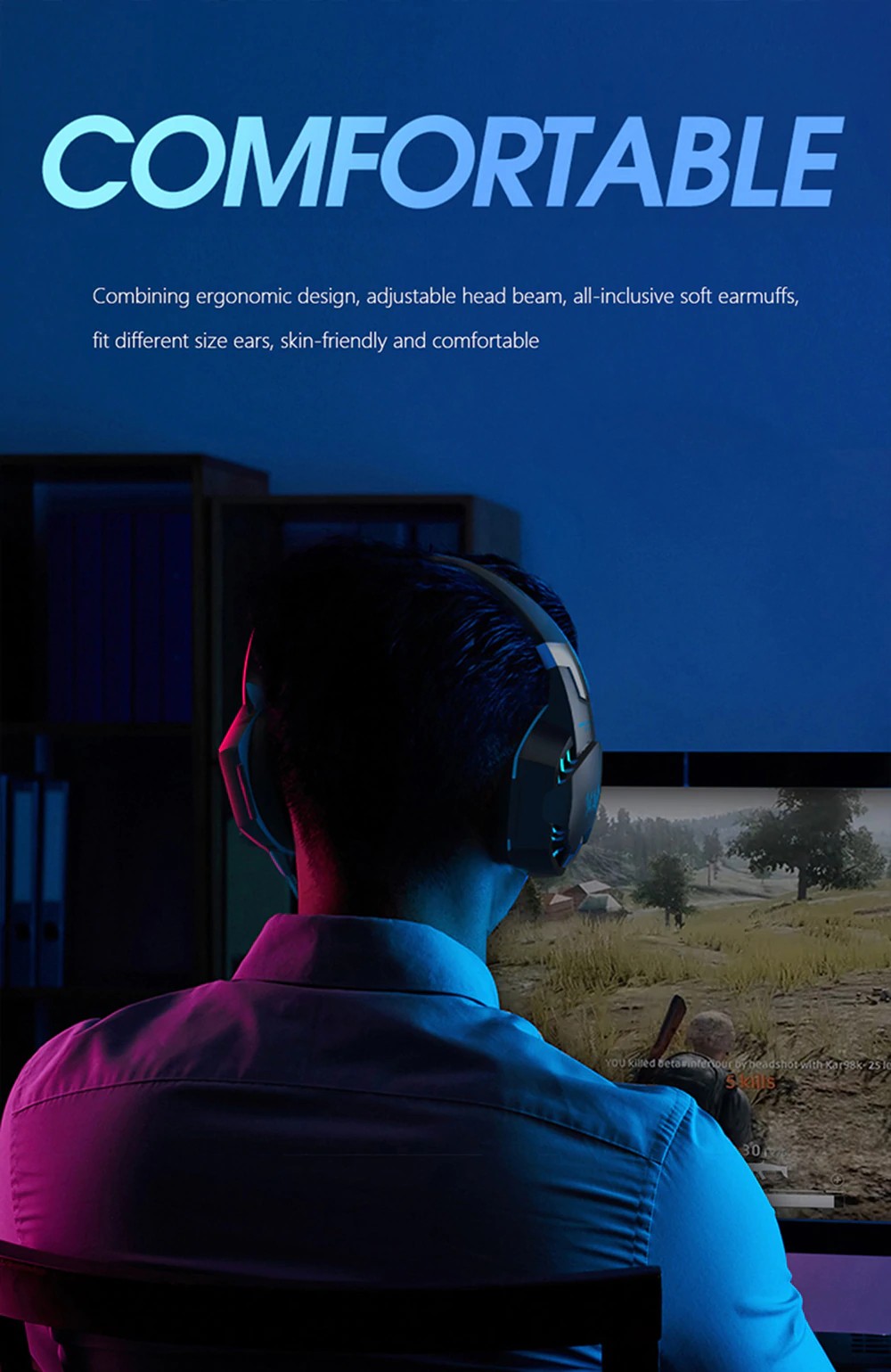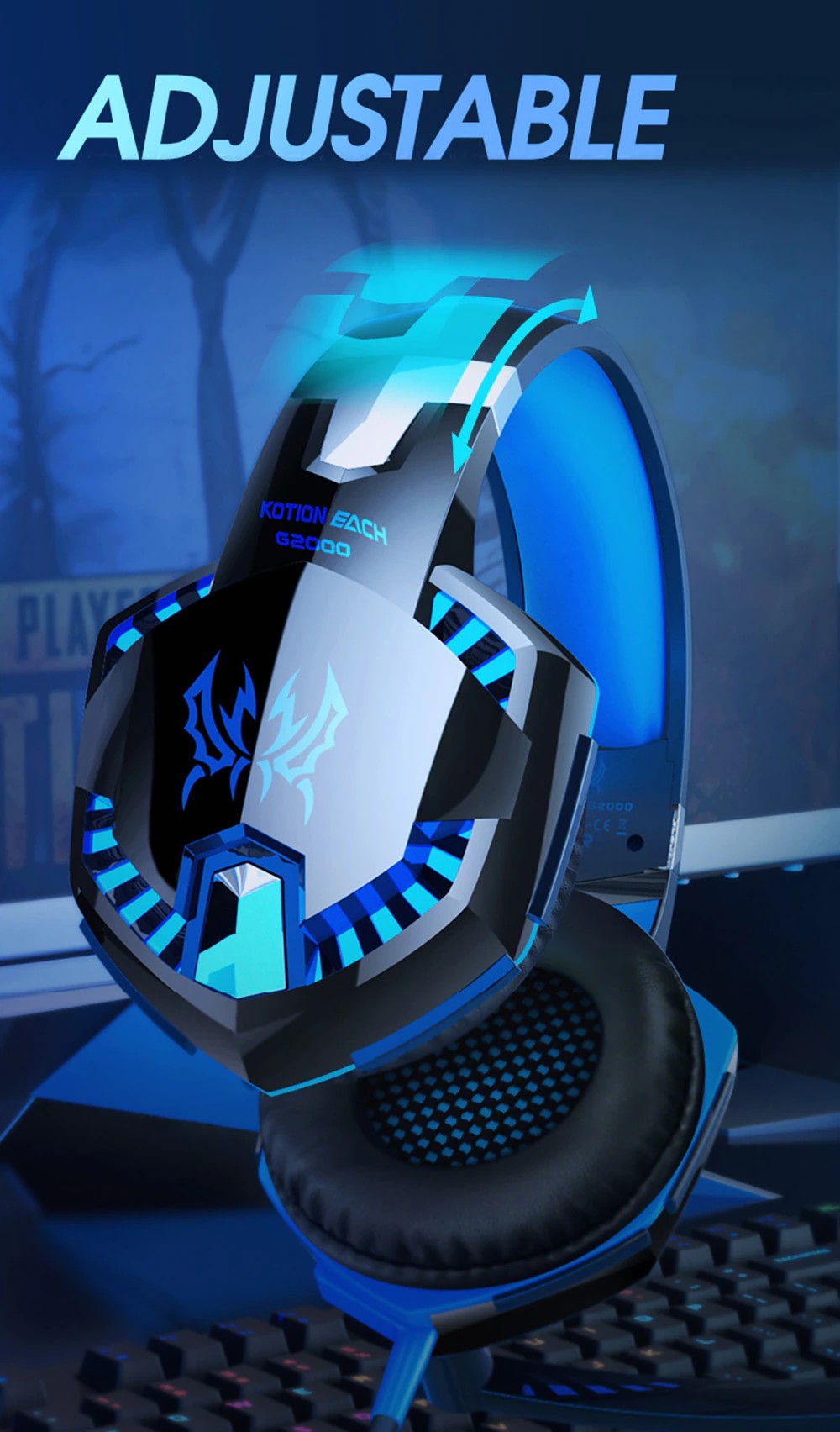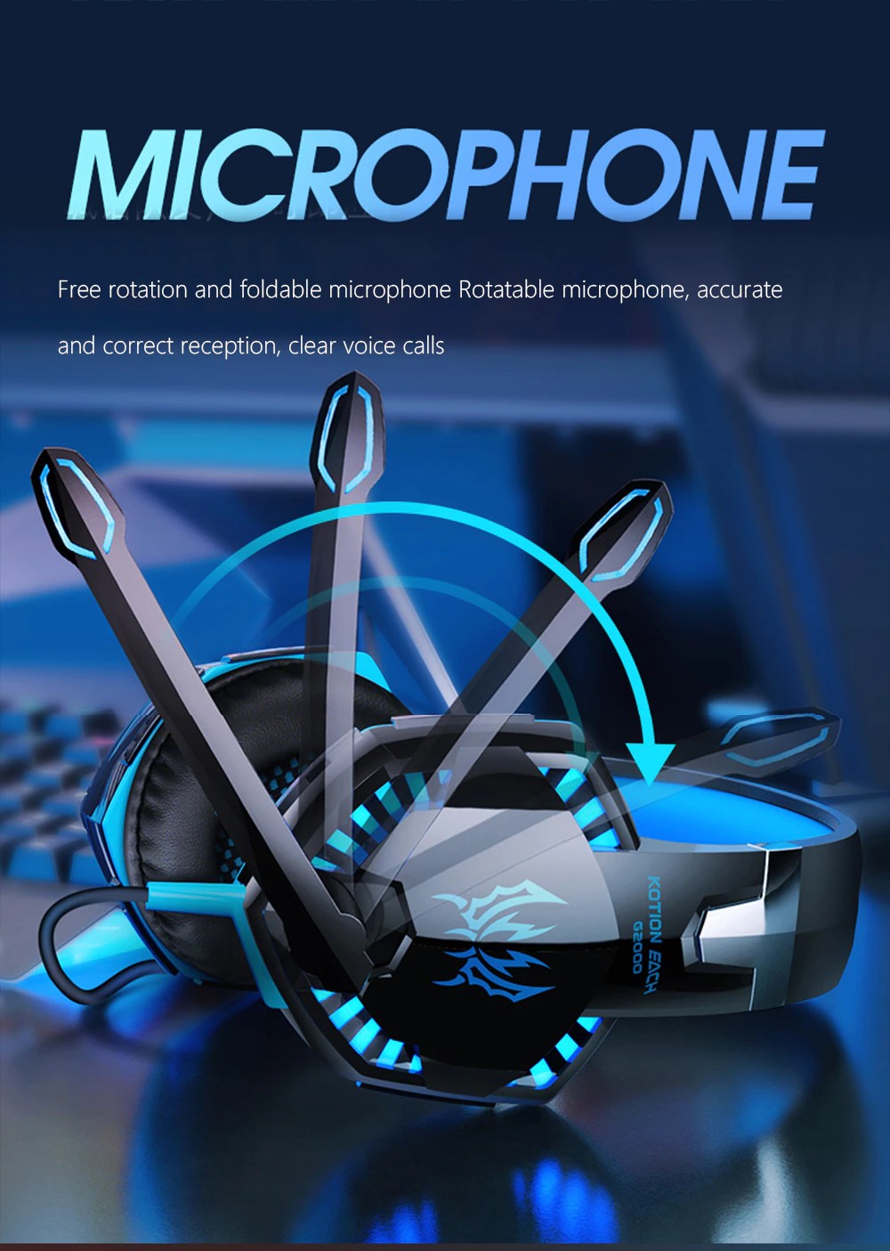 Игровые наушники KOTION EACH с подсветкой, проводная гарнитура с микрофоном, стереозвучание и басы, для PS4/телефона/ПК/ноутбука