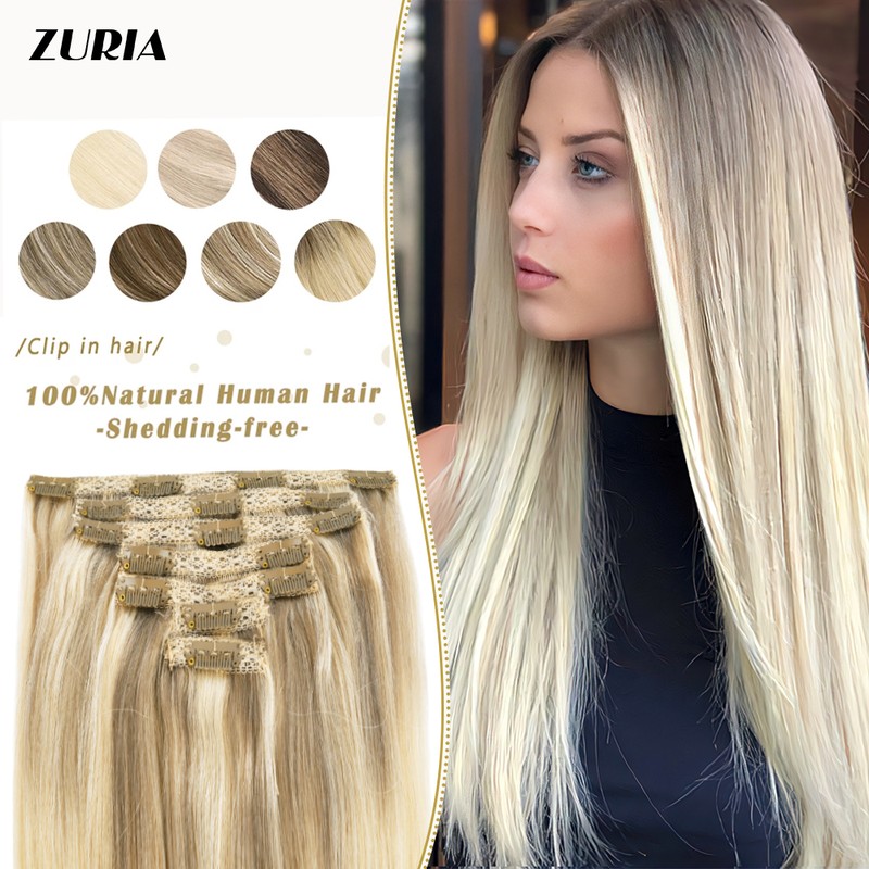 Заколки для наращивания натуральных волос на заколке ZURIA, 16 дюймов, 20 дюймов 24 дюйма 100%, прямые