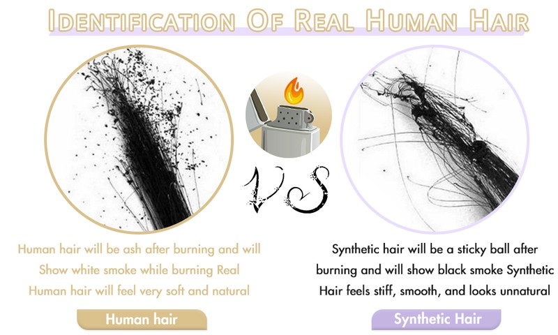 В то время как синтетические волосы будут липким мячом после горения и будут показывать черный дым, более того, человеческие волосы могут иметь несколько серых волос и секущийся конец, это нормально и не является проблемой качества.